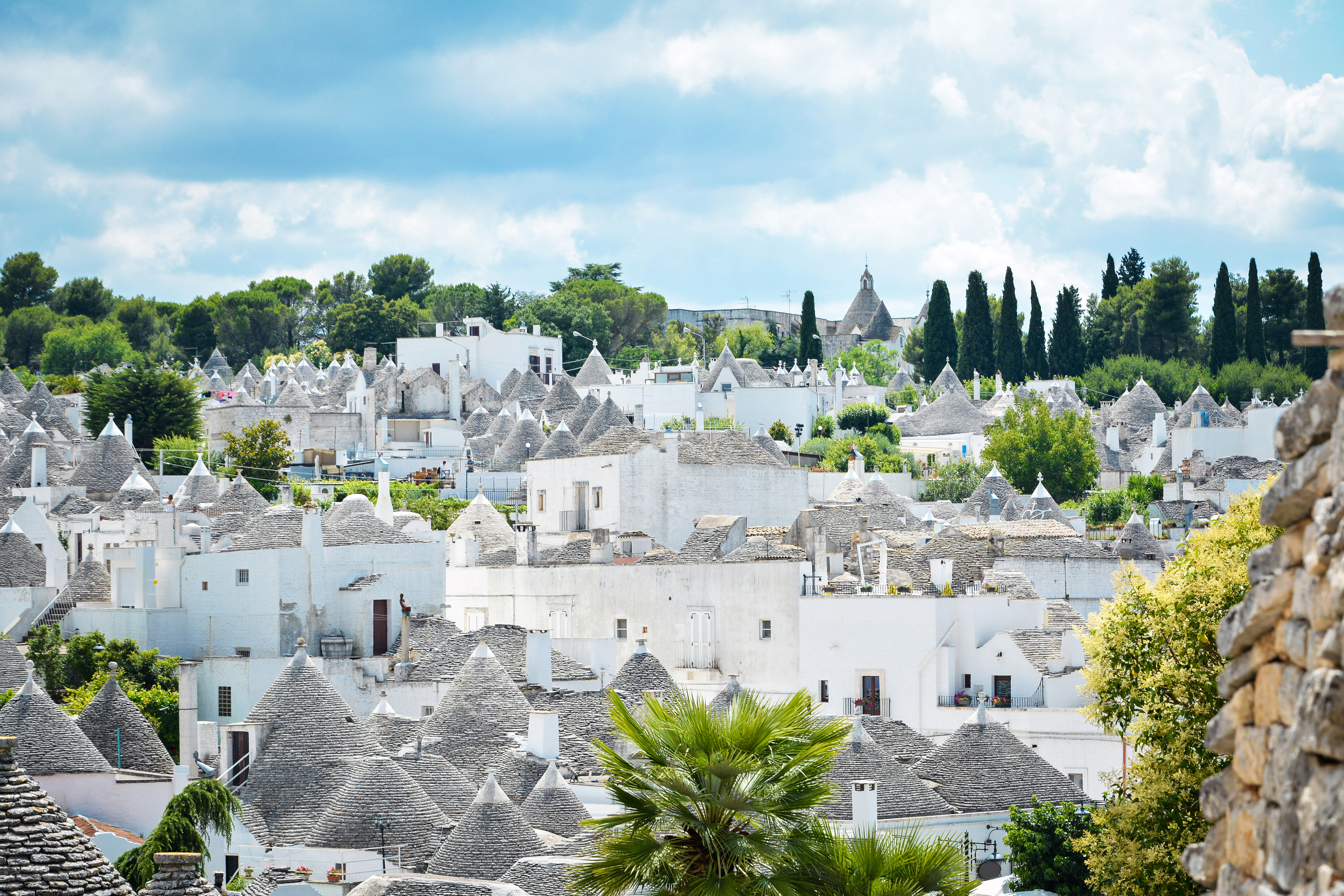 <Übergabe der Fahrräder und des Kartenmaterials, Briefing der Tour. An Ihrem ersten Radeltag fahren Sie durch den südlichen Teil Murgias. Zwischenstopp in Gioia del Colle, Heimat des Mozzarellas. Etappenziel ist heute ALBEROBELLO, die "Hauptstadt der Trulli“ (einzigartige Gebäudekonstruktion mit den eigenartigen Kegeldächern), die 1996 zum UNESCO Weltkulturerbe erklärt wurde. -