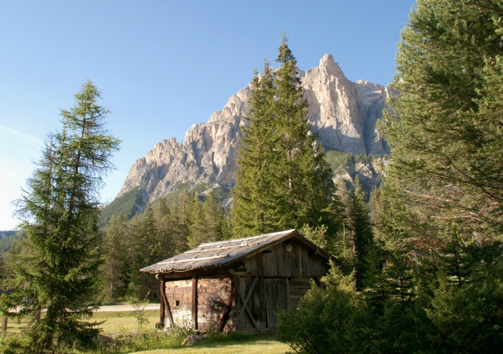 <Anreise nach Plätzwiese/ Pratopiazza mit öffentlichen Verkehrsmitteln. Checken Sie in Ihrer Unterkunft ein und genießen Sie die friedvolle Atmosphäre der Dolomiten.