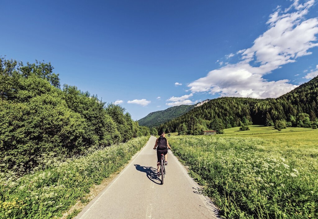 <Nach einem kurzen Transfer auf den Gailbergpass (ca. 7 km/350 Hm) erwartet Sie eine Abfahrt nach Kötschach-Mauthen. Auf dem Gailtalradweg zu Füßen des Karnischen Kammes radeln Sie gemütlich vorbei an