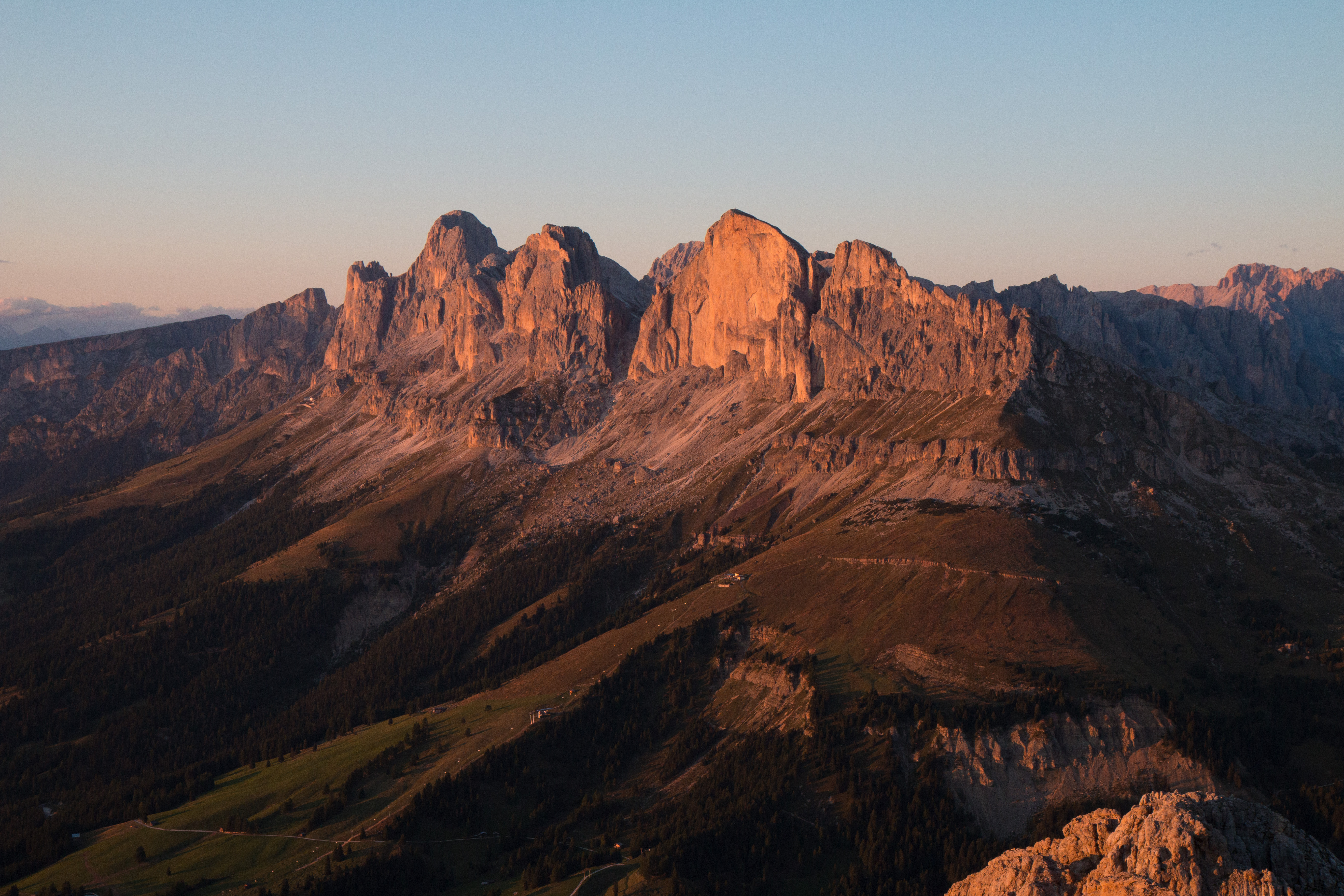 Nach einem ausgiebigen Fotostopp bei der kleinen Grasleitenpasshütte (Einkehrmöglichkeit), die wie ein kleines Schwalbennest am Fels gebaut ist, geht es auf Weg Nr. 584 hinunter zur Vajolethütte (Einkehrmöglichkeit), die direkt neben der Preusshütte steht. Nach einer Einkehr und vielen Fotos von den bekannten Vajolettürmen wandern Sie zunächst ein kleines Stück den Schotterfahrweg hinunter und bald wieder bergauf Richtung Rotwandhütte (Rif. Roda di Vael) Weg Nr. 541. Nach ca. 30 Min. Aufstieg bleiben Sie mehr oder weniger auf derselben Höhe und folgen dem Weg 541, 545 (Schafsteig) und wieder 541 bis zu Ihrer Unterkunft. -