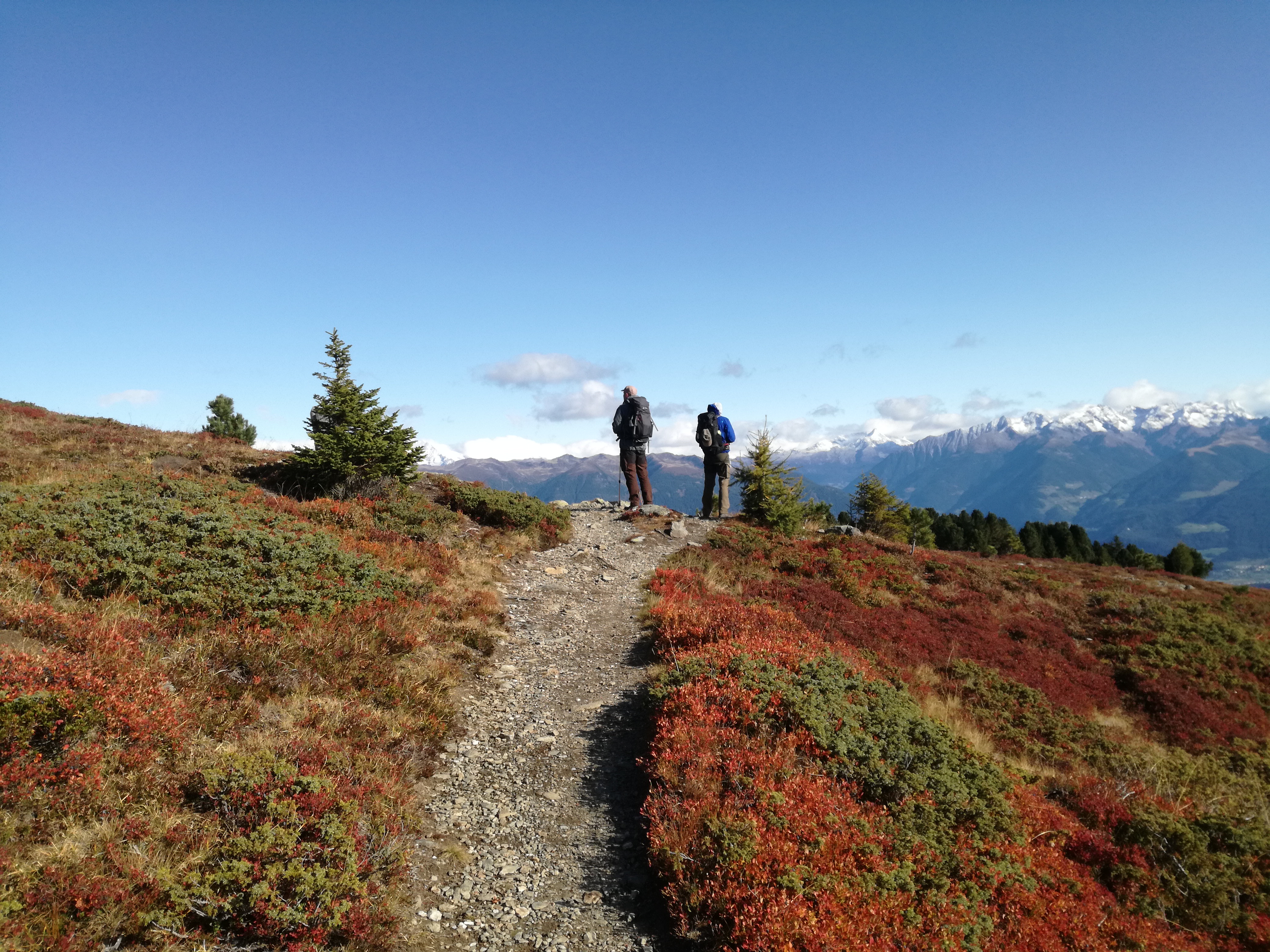 <Heute Morgen werden Sie nach Zumis gebracht (30 Min), wo die Wanderung beginnt. Der erste Abschnitt der Dolorama verläuft ganz leicht, aber stetig bergab durch die weitläufige Landschaft der Rodenecker-Lüsner Alm. Hier erhalten die Wanderer einen Einblick in das Leben in den Südtiroler Alpen. Sie sind umgeben von einer beeindruckenden Sicht auf die Pfunderer Berge und Panoramawanderungen mit toller Aussicht auf die Bergkette an der Grenze zwischen Österreich und Italien. Die Wanderung verläuft vorwiegend auf Schotterwegen. Sie durchqueren von den typischen Bergweiden dominierte Bauernhöfe.