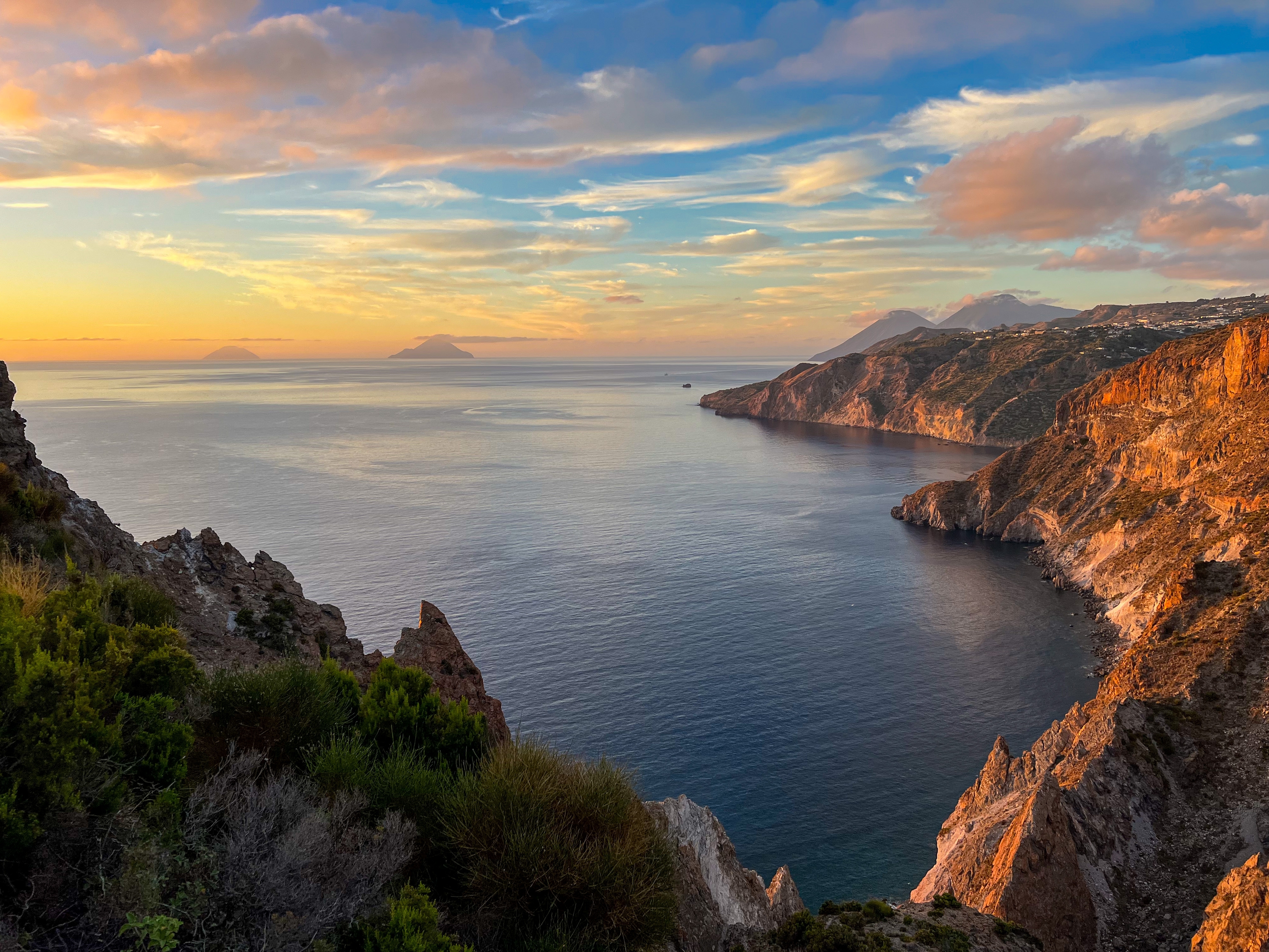 Die Liparischen Inseln verdanken ihren Namen König Liparos, der vor seinen Brüdern von Sizilien ins Exil floh. Er schenkte dem Windgott Aiolos seine Tochter zur Gemahlin und die Herrschaft über die Inseln – daher der Name „Isole Eolie“. Die sieben Inseln entstanden durch Vulkane und sind noch heute fruchtbar und grün. Obwohl sie nah beieinanderliegen, sind sie sehr unterschiedlich. Drei davon wirst du in Ruhe besuchen und erwandern. Handelswege, Obsidianabbau, griechische Kultur und Legenden wie Odysseus und der Sack der „Guten Winde“ machen die Inseln einzigartig und geschichtsträchtig.