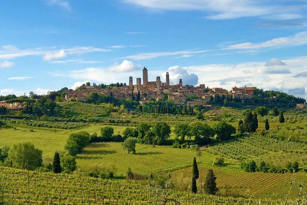 <Heute geht es ins Valle Col d´Elsa. Erkunden Sie die historische Festungsanlage und bewundern Sie die mittelalterliche Architektur von Colle, bevor Sie durch Weinberge und entlang rauschender Flüsse bis zum „Manhattan der Toskana“, wie Ihr Zielort San Gimignano aufgrund seiner an eine Skyline erinnernde Silhouette genannt wird. Schlendern Sie durch die vielen kleinen Gassen und bewundern Sie die scheinbar unendlichen Türme. -