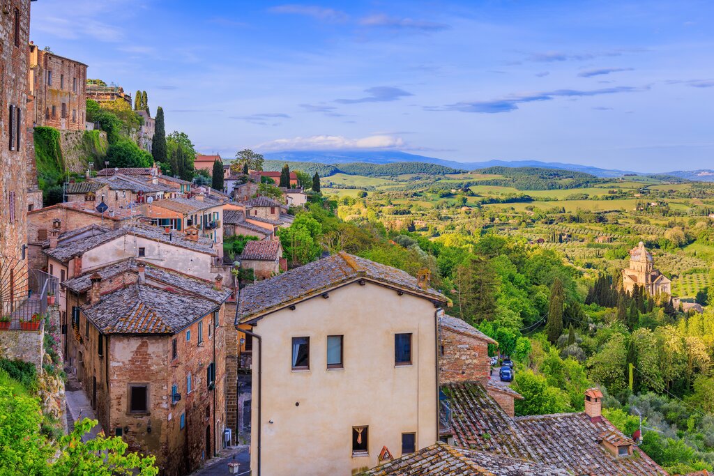 <Durch eine von Zypressen gesäumte Serpentinenstraße radeln Sie auf das authentische Festungsdorf Montechiello zu. Die weißen Straßen „Strade Bianche“ führen in die Renesaincestadt Pienza, auch berühmt als Filmkulisse für Hollywoods „Gladiator“. Die Bilderbuchlandschaft des Val d´Orcia begleitet Sie am Weg nach Montalcino. Hier wird wohl einer der bekanntesten Rotweine Italiens, der Brunello, mit Leidenschaft gekeltert. Probieren Sie diesen edlen Tropfen in einer der vielen Vinotheken