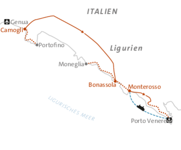 - Bahnhöfe: Camogli, Monterosso oder Bonassola