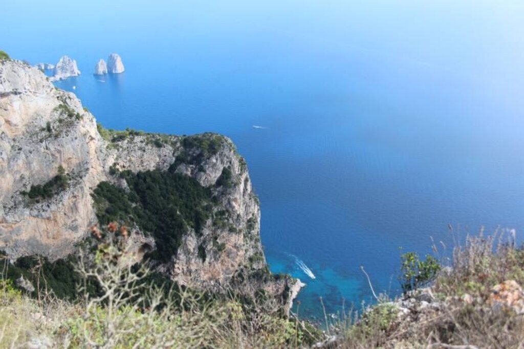 <Nehmen Sie das öffentliche Boot vom Hafen in Sorrent zur Insel Capri, der Perle der Bucht von Neapel. Hier haben Sie die Wahl zwischen zwei Wanderungen: einer kurzen, leichten zur Villa des Kaisers Tiberius und einer längeren