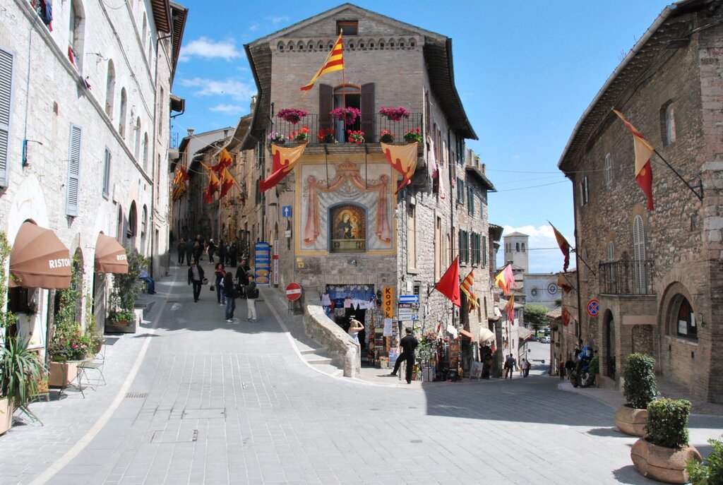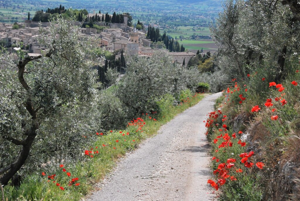 Eremo delle Carceri zu vermeiden. Dieser prächtige Klosterbau war einer der Orte, an denen sich Franziskus von Assisi regelmäßig zum Gebet zurückzog. Der Weg führt weiter durch einen Eichenwald zur aus dem 9. Jh. stammenden Abtei San Benedetto. Nach einem langen Abstieg erreichen Sie die mittelalterliche Festungstadt Spello. -