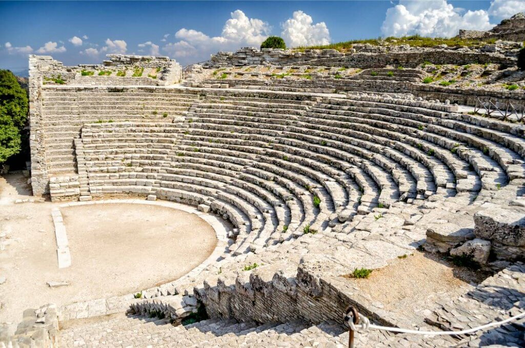 <Von Scopello aus kommt man zur archäologischen Besichtigungstätte Segesta, besonders wertvoll ist sein Theater, das wie ein Muschel, die in der Leere schwebt, auf das Meer blickt! Segesta war eine mächtige Stadt der Elimer, ein Volk, dass aus der Region der heutigen Türkei kam. Die Stadt hatte auch unter den Griechen und Römern glanzvolle Zeiten, die sie während des ersten punischen Krieges besetzten. Schwierigkeitsgrad der Etappe: mittel. -