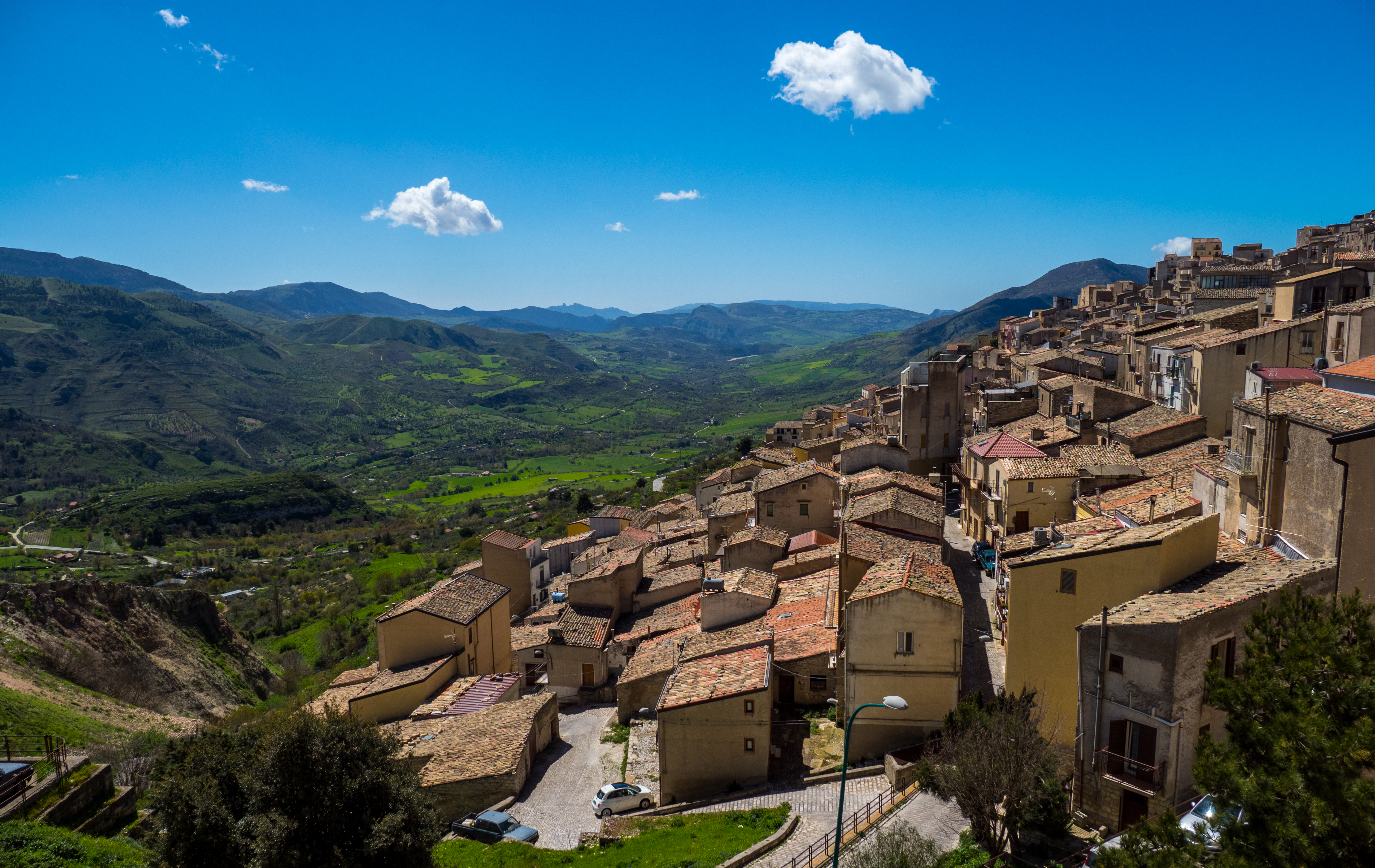 <Ein interessanter Ort in Corleone ist der Wasserfall “delle due rocche”, nur 10 Minuten außerhalb der Stadt gelegen. Der Weg führt Sie dann durch Weinberge und offene Felder. Sie kommen an Trockenstein Masserie (Bauernhöfe) vorbei, wo Sie vielleicht einen Bauern treffen, der möchte, dass Sie seine frische Ricotta kosten! Vom Prizzisee bringt Sie eine gleichmäßige Steigung in die Stadt, wo es Zeit ist, sich einen Cannolo mit Pistazie und kandierter Orange zu gönnen. -