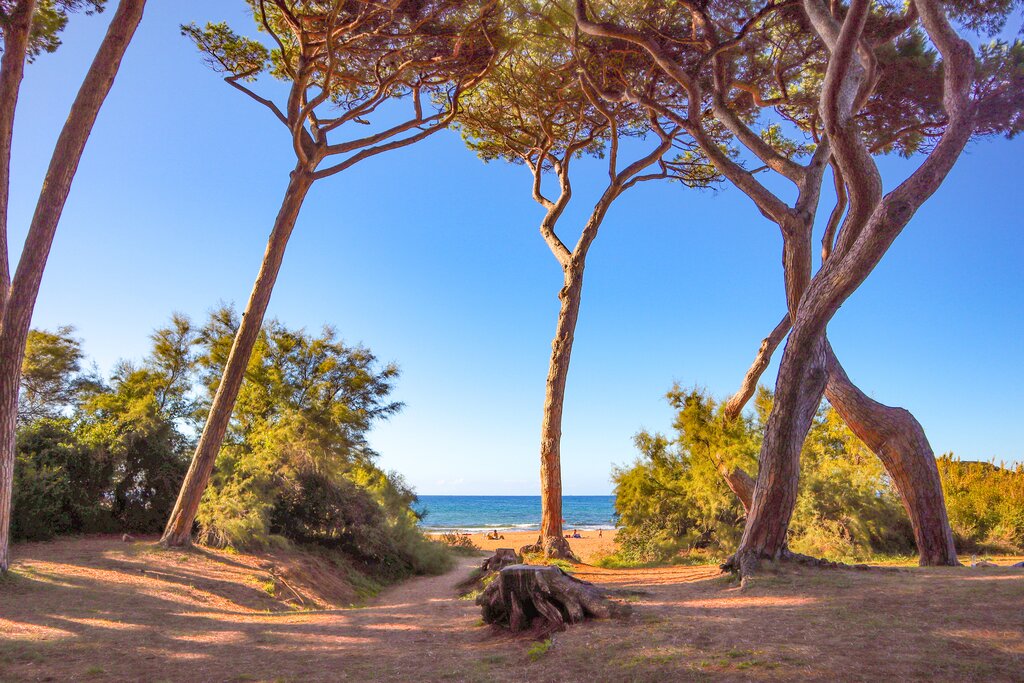 <Heute erwartet Sie eine herrliche Strandwanderung. Zunächst geht es durch die Pineta von Cecina, einen schattigen Pinienwald, der sich über viele Kilometer am Strand entlang erstreckt. Zahlreiche Pfade führen unter dem dichten Blätterdach hindurch. Später passieren Sie das außergewöhnliche Naturschutzgebiet der Oase von Bolgheri und spazieren über den weichen Sandstrand. Natürlich darf auch ein Bad in den Wellen nicht fehlen, oder zumindest ein Stopp in der Strandbar.