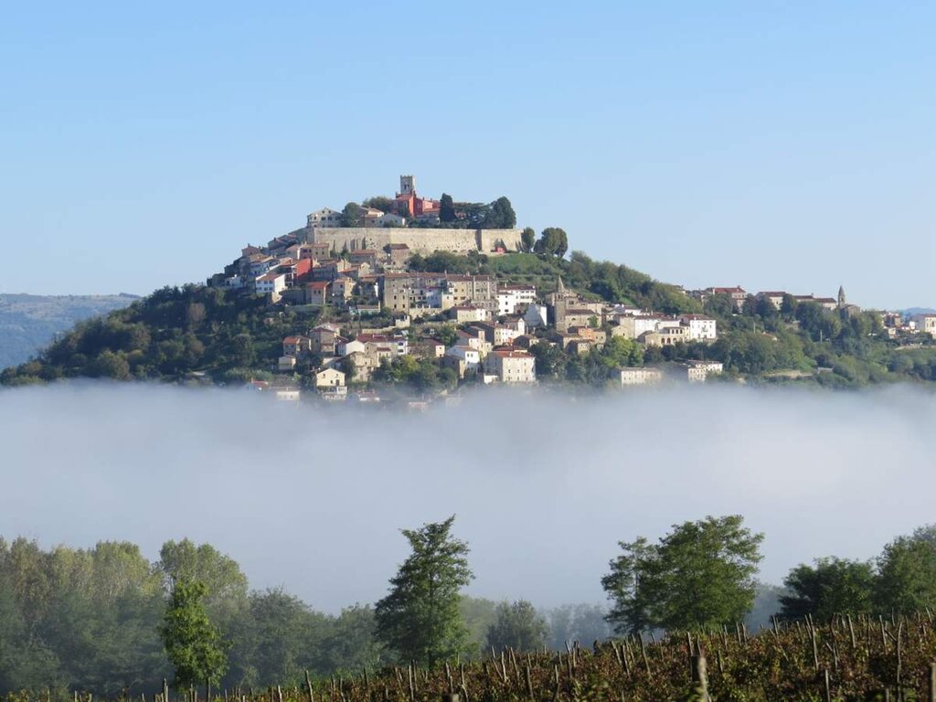 <Nach dem Frühstück, radeln Sie durch die hügelige Landschaft und entlang der istrischen Weinberge. Unterwegs können Sie die mittelalterlichen Städtchen Grožnjan und Oprtalj auf Ihrer Reise nach Motovun besichtigen. Die mittelalterliche Stadt Motovun liegt eindrucksvoll auf einem steilen 277 m hohen Hügel und die Altstadt ist von Stadtmauern umgeben. -