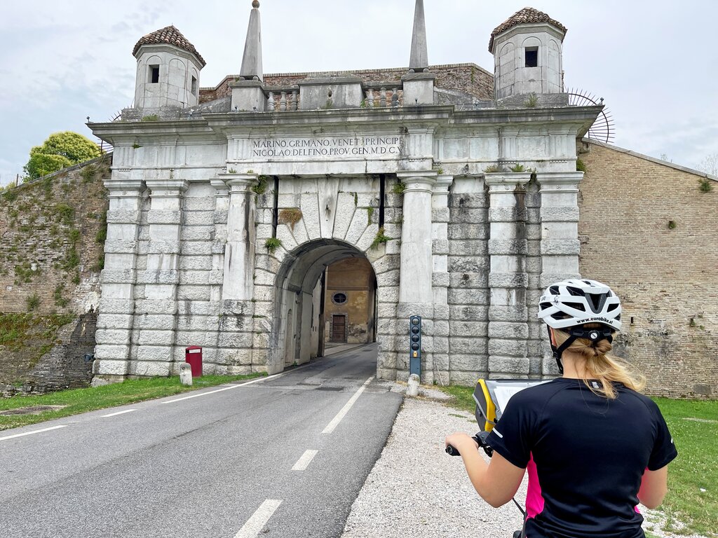 <Bestaunen Sie vor den Toren der Stadt Codroipo die Villa Manin, die Sommerresidenz des letzten venezianischen Dogen, bevor es durch die Kulturlandschaft und auf dem Flussradweg des Tagliamentos Richtung Küste geht. In dem in der Römerzeit gegründeten Latisana, mit seiner großen Anzahl an Sakralbauten, können Sie das Meer bereits riechen. Einige Kilometer weiter wird dann auch das Auge vom Blick auf die Lagune verwöhnt. In Marano Lagunare schlendern Sie am Abend durch die kleinen Gassen der malerischen Altstadt. Fallweise auch Übernachtung in Lignano möglich.