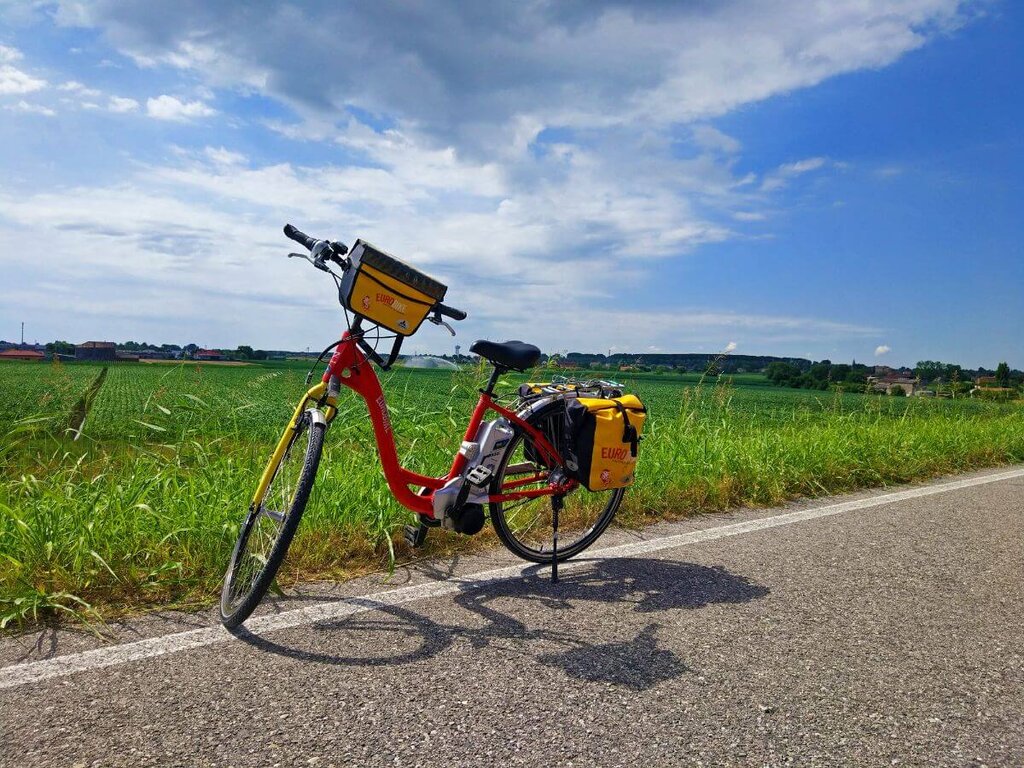 <Auf verkehrsarmen Wegen führt die heutige Etappe zunächst an die Etsch. Diese leitet durch fruchtbare Felder, Melonenplantagen und stille Dörfer bis nach Adria. Eine freundliche, kleine Stadt mit viel Charme. Gegründet von den Etruskern wegen der Nähe zu den Flüssen Etsch und Po, sind heute vor allem die verzweigten Kanäle, engen Gassen, gemütliche Cafés und die freundlichen Menschen Anziehungspunkte für Besucher. -