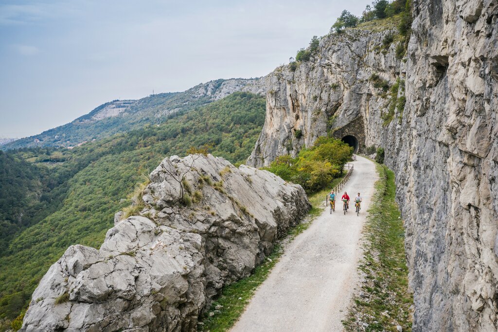 <Zu Beginn der heutigen Etappe radeln Sie durch das Hinterland von Triest in eine karge von Höhlen durchzogene Felslandschaft, bevor es wieder zurück ans Meer, zu einem Küstengebiet von einzigartiger Schönheit geht. Dort, wo die Karsthochebene in das tiefblaue Wasser eintaucht, und die weißen Steilhänge senkrecht über dem Meer gen Himmel ragen, folgen Sie der Küstenstraße durch suggestive Orte wie Duino, Sistiana, Miramare und Barcola. Zeit nehmen sollten Sie sich für einen Besuch des von der Romantik geprägten Schlosses von Miramare über der Bucht von Grignano inmitten eines herrlichen Parks, in dem mehr als 2000 Pflanzenarten gedeihen. Über dem Golf von Triest erhebt sich die gleichnamige Stadt, einst Hafenmetropole des Habsburger Reiches, wo Sie den heutigen Abend verbringen.