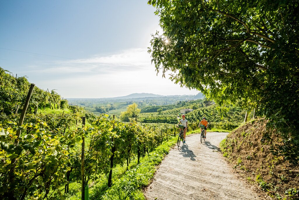 <Die heutige Etappe wechselt zwischen Natur und Kultur. Zu Beginn radeln Sie von Vittorio Veneto vorbei am Revine See in Valmareno zwischen den Hügeln von Treviso und den venezianischen Voralpen. Anschließend radeln Sie inmitten von grünen Wäldern, Buchen und Kastanienbäumen oberhalb des Dorfes Follina, eines der schönsten Dörfer Italiens. Wir empfehlen Ihnen unbedingt die Einkehr in der Osteria Senz‘Oste- ein berühmter Ort mit einzigartigem Charme. Von oben haben Sie ein 180-Grad-Panorama über die charakteristischen Hügel, auf denen die Weinberge an steilen Hängen wachsen.