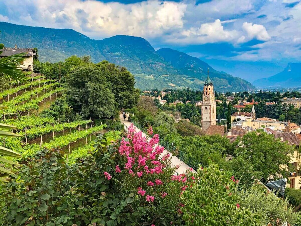 <Von Bozen zunächst entlang des Flusses Eisack und dann auf dem schönen Radweg bis nach Meran. Die Kurstadt am Zusammenfluss von Passer und Etsch gelegen wartet mit zahlreichen Sehenswürdigkeiten (Landesfürstliche Burg, Tappeinerweg, Kurpromenade, Postbrücke,…). Zurück geht es über Lana mit dem berühmten Schnatterpeck-Altar durch Obst- und Weingärten nach Eppan und wieder zurück ins Quartier.