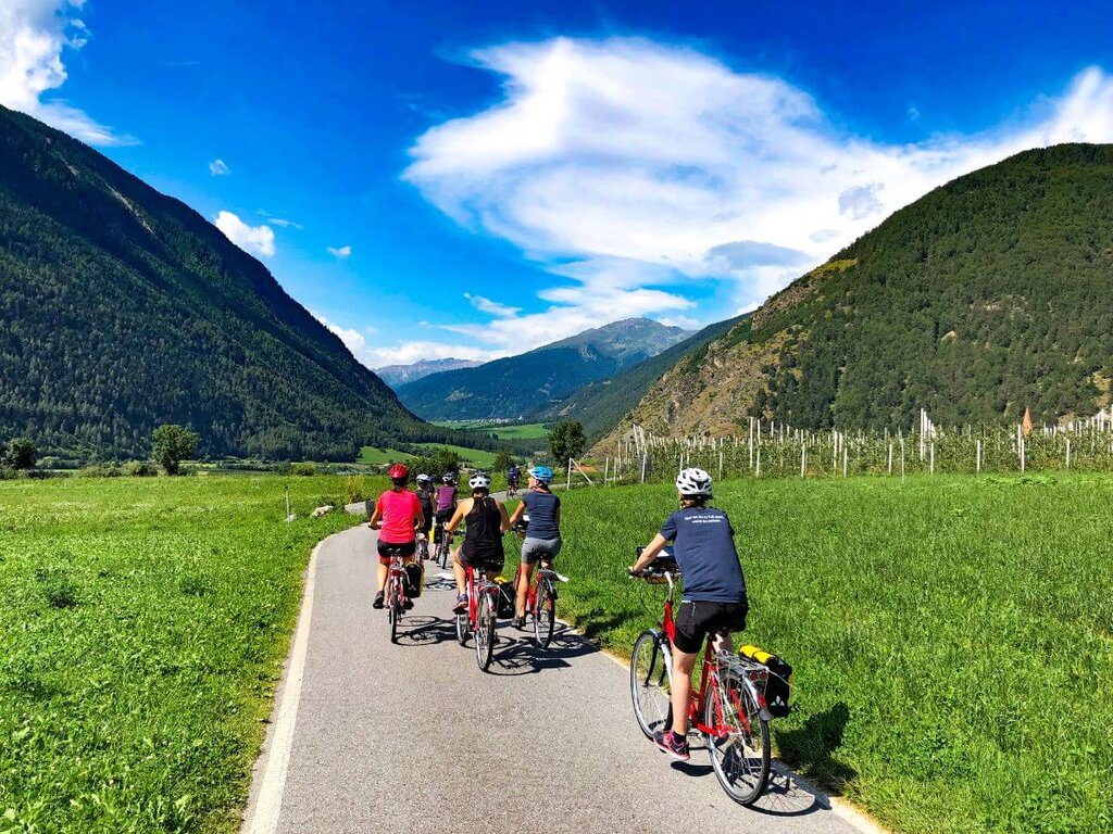 <Per Bahn nach Brixen. Die alte Bischofsstadt liegt malerisch in den Rebanlagen eingebettet. Die sehenswerte Altstadt mit Lauben und Dom sollte besichtigt werden. Zurück nach Bozen liegt das mittelalterliche Städtchen Klausen mit dem Kloster Säben am Weg. Geradelt wird stetig bergab auf der alten Eisenbahntrasse, die zu einem wunderschön angelegten Radweg umfunktioniert wurde. -