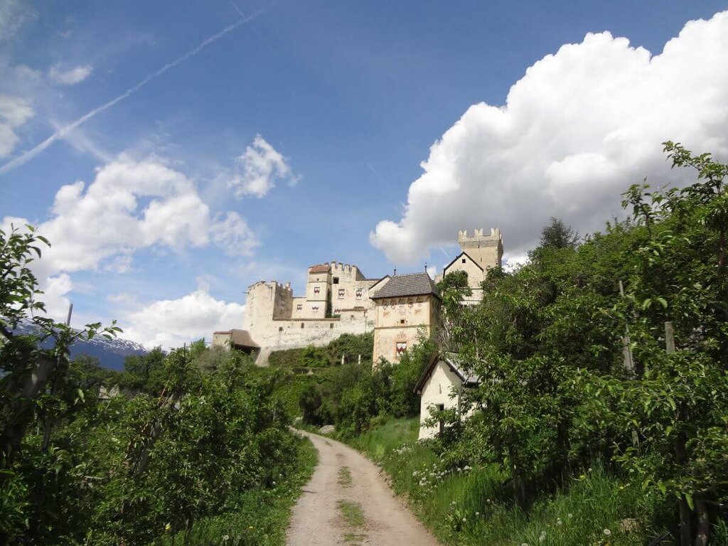 <Diese Etappe führt Sie durch den Obstgarten des Vinschgaus. Entlang des Latschander Waalweges erwandern Sie die Anbaugebiete der besten Südtiroler Weine. Weiter hinauf am archäologischen Wanderweg – fast bis zu Messners Schloss Juval, das hoch über dem Tal thront. Nach einigen Serpentinen führt die Route talwärts nach Naturns. -