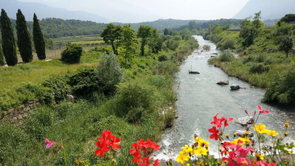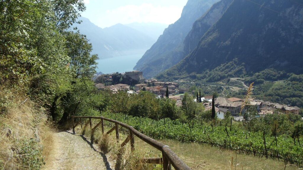 <In Ceniga starten Sie Ihre Wanderung durch die Weinreben des Sarcatales. Bald empfängt Sie ein riesiges Felssturzgebiet, das an eine Wüste aus Stein erinnert. Mit Blick zum Lago di Cavedine geht es vorbei an Obst- und Gemüsefeldern in den kleinen Ort Pietramurata, umgeben von den höchsten Felswänden der Gardaseeberge im Flusstal der Sarca. -