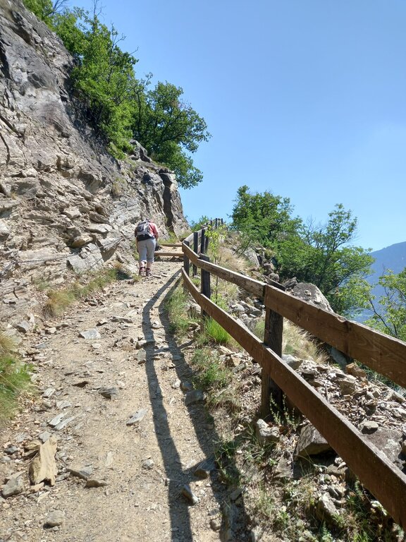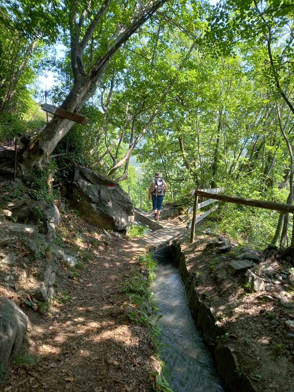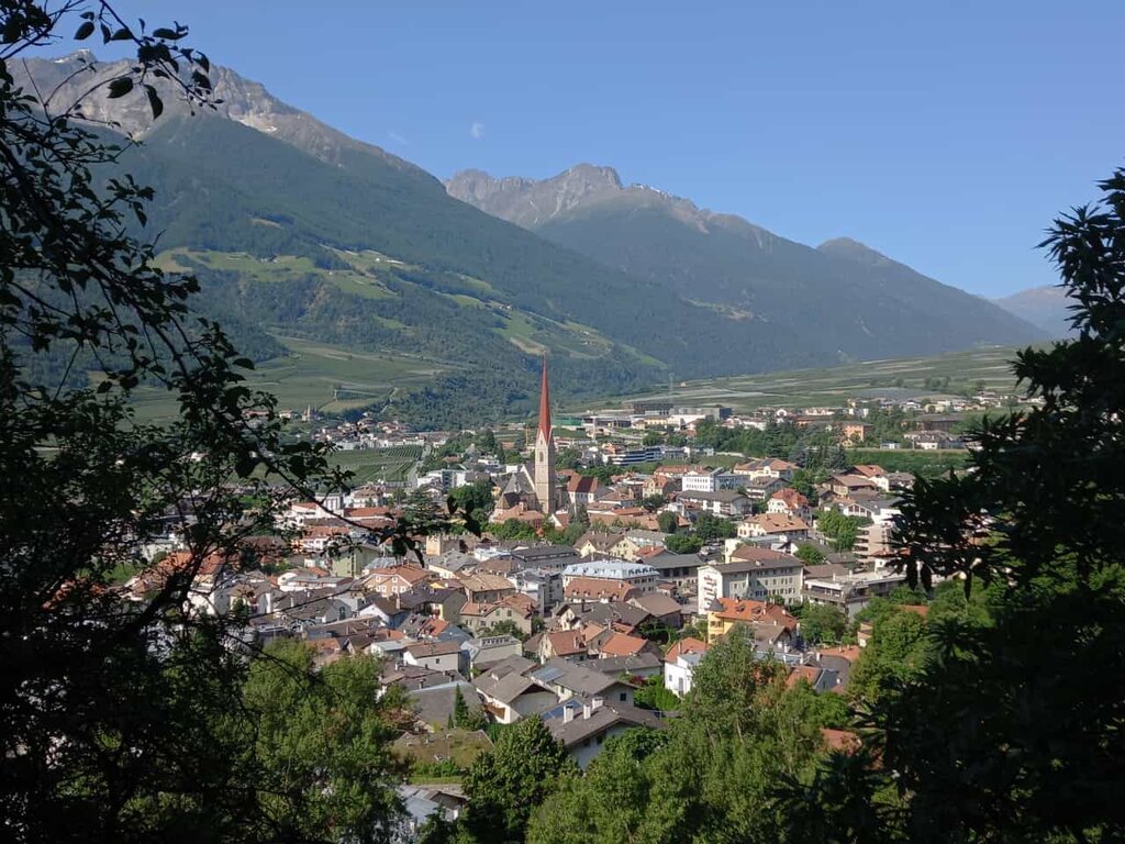 <Diese Etappe führt Sie durch den Obstgarten des Vinschgaus. Entlang des Latschander Waalweges erwandern Sie die Anbaugebiete der besten Südtiroler Weine. Weiter hinauf am archäologischen Wanderweg – fast bis zu Messners Schloss Juval, das hoch über dem Tal thront. Nach einigen Serpentinen führt die Route talwärts nach Naturns. -