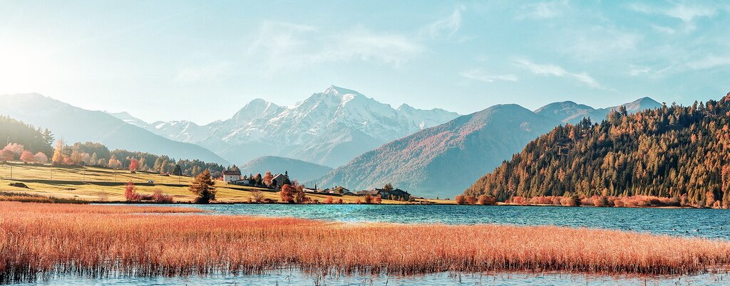 <Am Abend persönliche Toureninformation und Radausgabe. Genießen Sie den außergewöhnlichen Blick auf den Reschensee und die umliegenden Berggipfel, bei einem kleinen Spaziergang kommen Sie so richtig in Südtirol an.