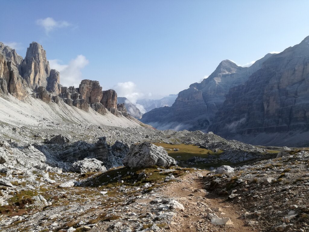 <Der heutige Tag ist voller Höhepunkte: von Ihrer Hütte in Fanes aus wandern Sie zum Limo Pass und zum nahe gelegenen Limo See. Weiter geht es zur hübschen Lagazuoi Alpe, mit dem kleinen, aber bezaubernden Lagazuoi See, einem von zerklüfteten Gipfeln umgebenen kleinen blauen Fleckchen. Diese Gegend ist berühmt für ihre Tunnel und Gräben aus dem 1. Weltkrieg.