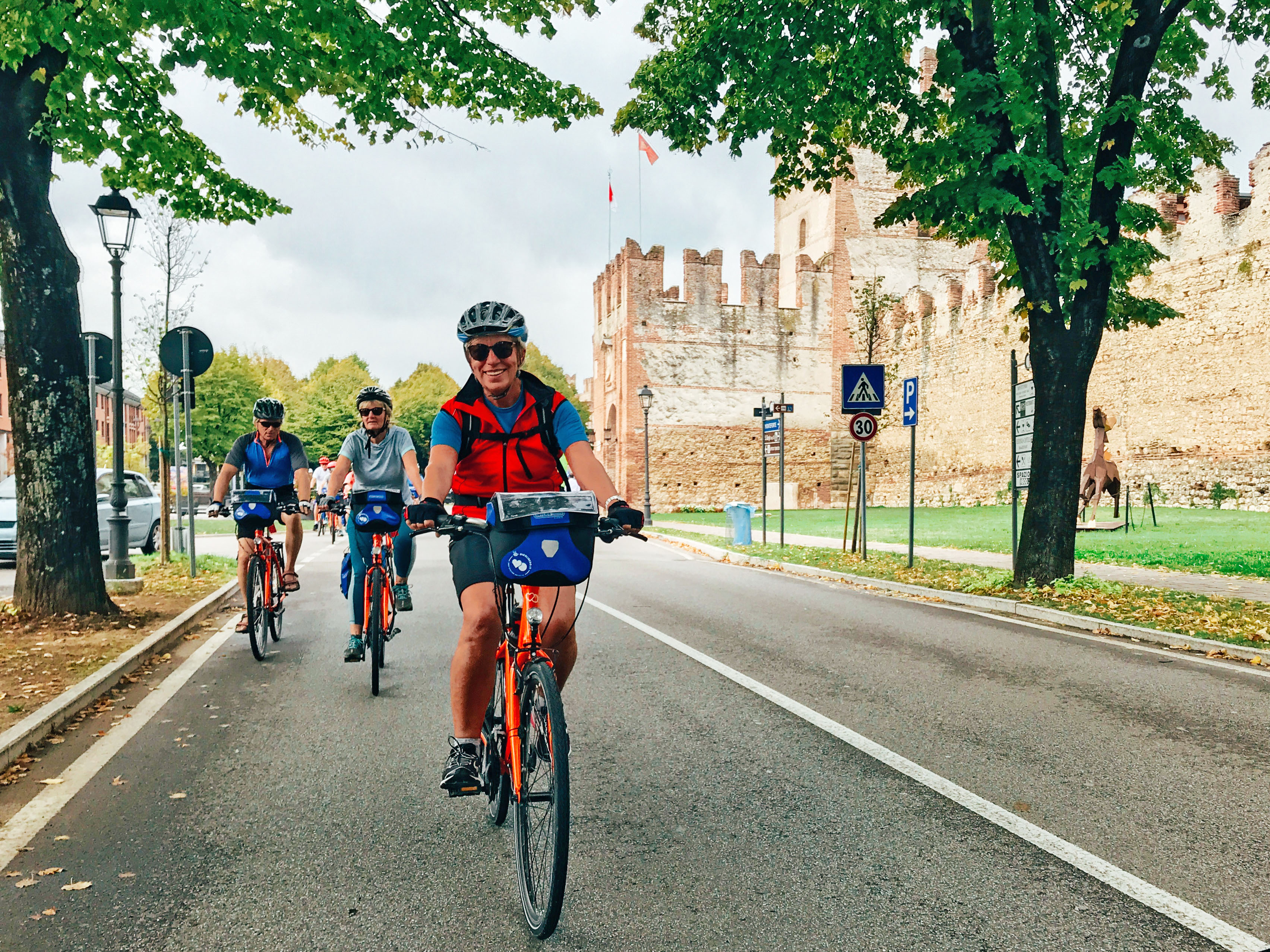<Nach den sanften Hügeln, die den Gardasee umgeben treffen Sie auf den Fluss Etsch und mit diesem zusammen radeln Sie nach Verona, einer der wichtigsten Städten des Venetos. Eine Besichtigung der römische Arena, der Kirche von San Zeno und des Hauses der Julia sind unablässig.