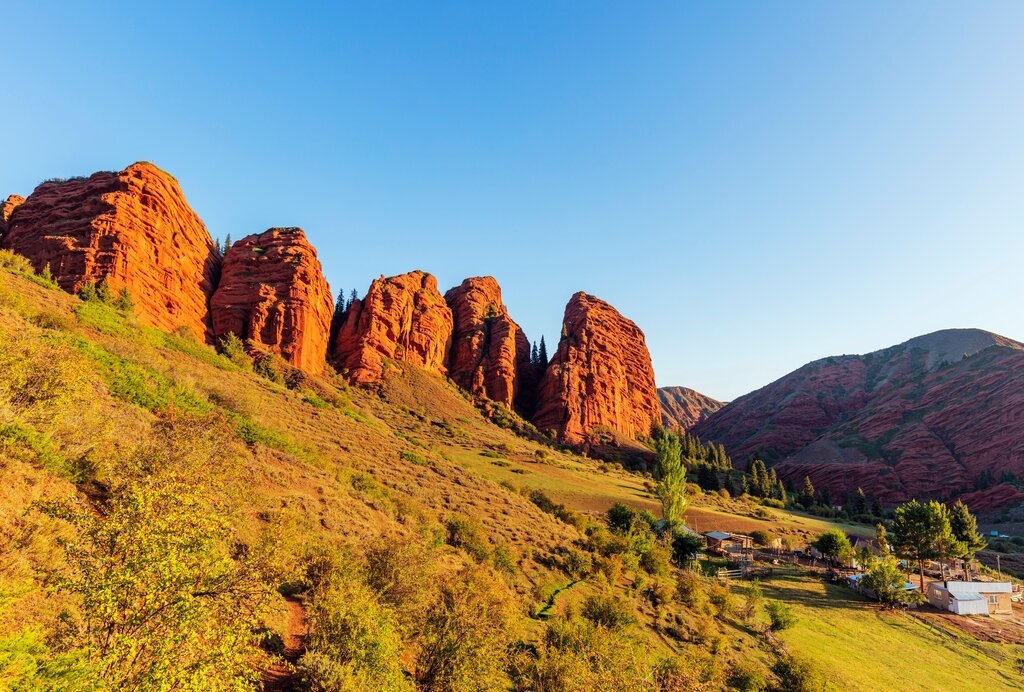 <Karakol unterscheidet sich von anderen Städten Kirgisistans durch seine gut erhaltenen russischen "Lebkuchenhäuser". Besonders beeindruckend ist die russisch-orthodoxe Dreifaltigkeitskathedrale von 1876, die während des 2. Weltkriegs als Schule und unter den Sowjets als Tanzsaal genutzt wurde. Auch die Dungan-Moschee, ein exotisch anmutendes, blaues Gebäude im Zentrum, fällt auf. Sie ähnelt einem buddhistischen Tempel, ist jedoch eine Moschee, die 1910 für die Dungan-Gemeinschaft in Karakol errichtet wurde – chinesische Muslime, die vor Verfolgung geflüchtet sind. Am Nachmittag fahren Sie mit dem Fahrrad zum Karakol Nationalpark, wo Sie entlang des Flusses radeln oder wandern können. Am späten Nachmittag kehren Sie nach Karakol zurück.