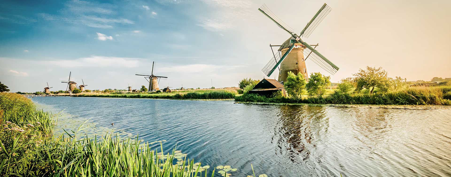 <Heute fahren Sie zunächst nach Kinderdijk. Erleben Sie hier die bekanntesten Windmühlen der Niederlande. Die 19 noch gut erhaltenen Mühlen stammen aus dem 18. Jahrhundert und wurden von der UNESCO zum Weltkulturerbe ernannt. Nach weiterer kurzer Etappe erreichen Sie Ihr heutiges Tagesziel Dordrecht. Die älteste Stadt Hollands liegt auf einer von breiten Flüssen umsäumten Insel und ist geprägt von zahlreichen historischen Gebäuden, Innenstadthäfen und einer fantastischen Atmos-phäre. -