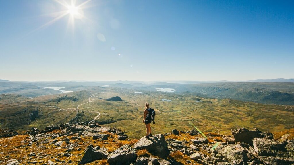 <Am ersten Wandertag steht gleich ein Klassiker auf dem Programm: Auf das Bitihorn mit 1.607 m über dem Meeresspiegel führt eine schöne Wanderung, die sich gut als Eingehtour eignet. Die Route beginnt vor der Haustür des Bygdin Hotels und führt Sie hinauf zu einem fantastischen Panoramablick über Valdres. -