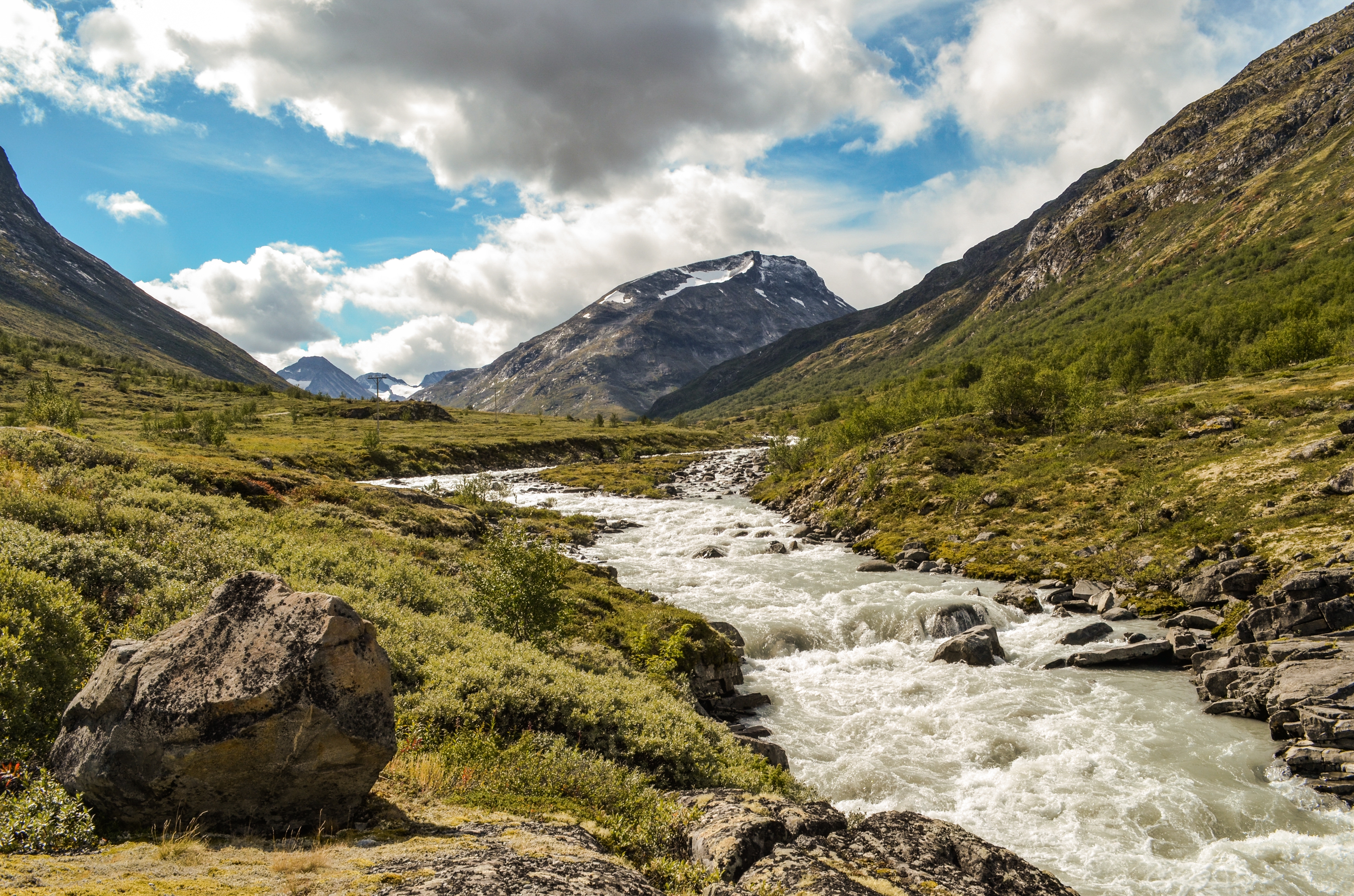 <Heute steigen wir südwestlich von Galdhøpiggen ab und folgen dem Gletscherfluss Visa in Richtung der Grenze zwischen Innlandet und Vestlandet. Es ist kein langer Weg, aber seien Sie sich bewusst, dass das Gelände etwas felsig sein kann; wir werden zwei Flüsse und einen kurzen Bergpass überqueren, bevor wir unser Ziel erreichen. Sie werden in märchenhafte Landschaften, leuchtende Farben und frische Luft eintauchen... Gibt es einen besseren Einstieg für eine schöne Wanderung im Herzen Norwegens?