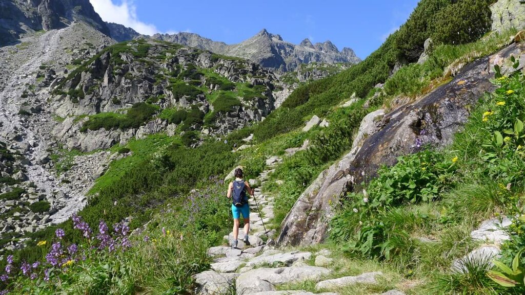<Heute erlebst du ein besonderes Naturerlebnis: die Weiße Tatra (Belianske Tatry). Der helle Kalkstein der Gipfel gab dieser Gebirgsgruppe ihren Namen. Es erwartet dich ein faszinierender Mix aus mystischen Waldwegen, sattgrünen Wiesen und wilden Blumen. In der Luft der frisch-herbe Geruch von Tannennadeln. Auch heute kommst du wieder an mehreren Seen vorbei, die miteinander um die Wette funkeln. Am Grünen See erwartet dich eine gemütliche Berghütte. Hier kannst du den Wandertag bei Köstlichkeiten ausklingen lassen und noch einmal den wunderbaren Anblick genießen. -