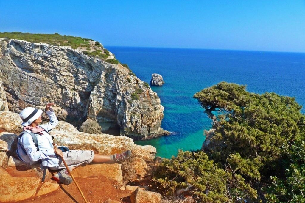 <Dieser Tag ist der spektakulärste in seiner natürlichen Schönheit. Verlassene geheime Strände mit Lagunen und eine fast unberührte Küstenlinie, eine Landschaft von seltener Schönheit, die entdeckt wird, während man auf Pfaden entlang der Klippen spaziert. Dieser Tag ist der anspruchsvollste Tag auf dem Programm. Es gibt zwei Möglichkeiten: beginnen Sie Ihre Wanderung nach Sagres in Salema (lange Option) oder nach einem kurzen Auto-Transfer vom Zavial Strand (kurze Option). Genießen Sie in der Baleeira Bucht einen fantastischen Strand mit feinem Sand und fünf kleine Inseln, die diesem Ort einen einzigartigen Charme geben. Hier werden Sie die letzten zwei Nächte Ihres Programms verbringen. (Lange Option insgesamt 17km, 400 HM)