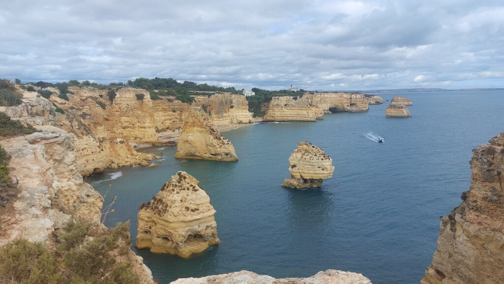<Von Ferragudo auf einem beeindruckenden Klippenweg über steile Felsen, ausgehöhlte Kalksteinformationen und versteckte Sandstrände bis nach Carvoeiro, wo die Einkehr in einer Strandbar lockt. Anschließend setzen Sie Ihren Weg durch die sieben hängenden Täler fort, einem herrlichen Küstenpfad, der durch sieben Einschnitte vorbei an unzähligen Felsgebilden bis zur Praia da Marinha führt.