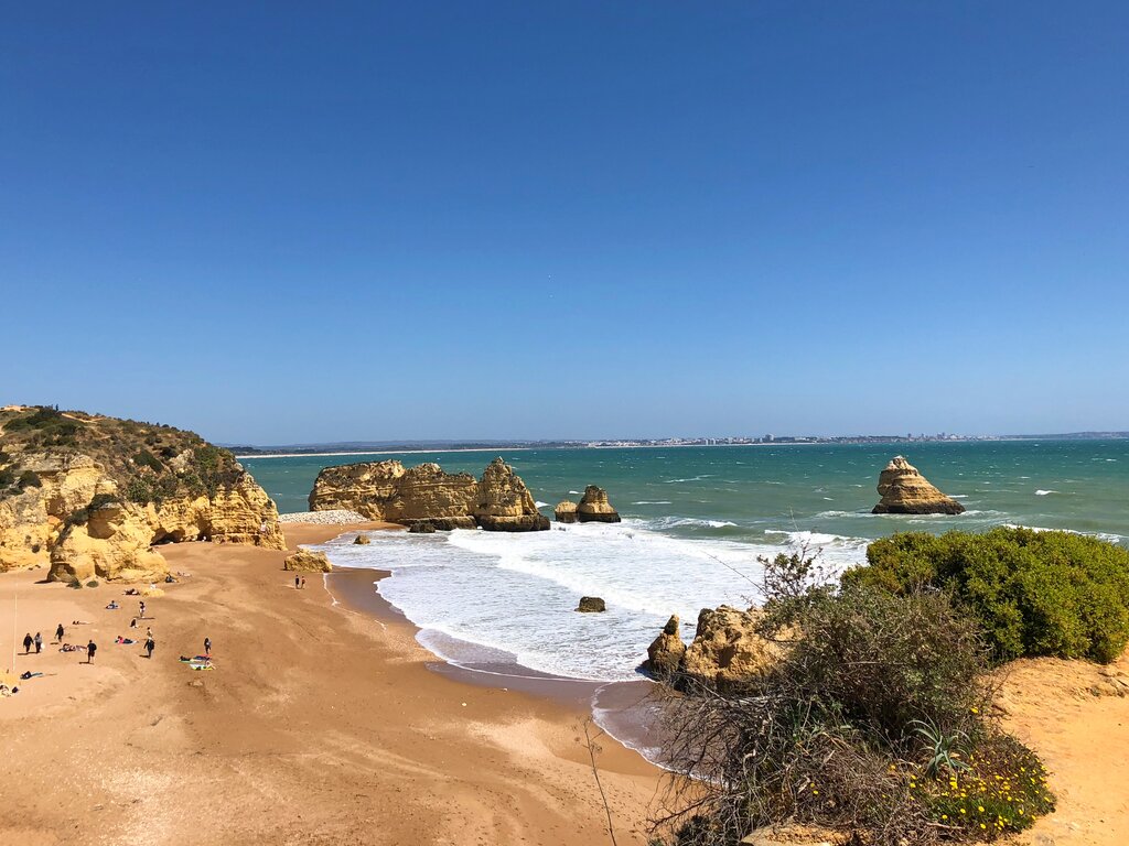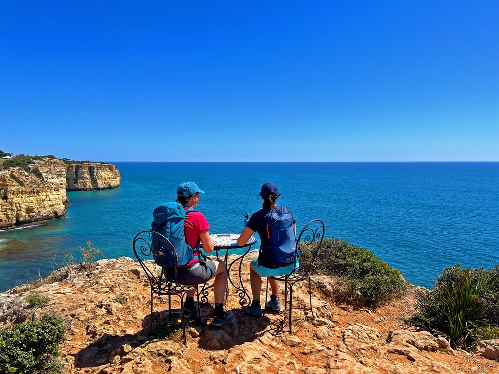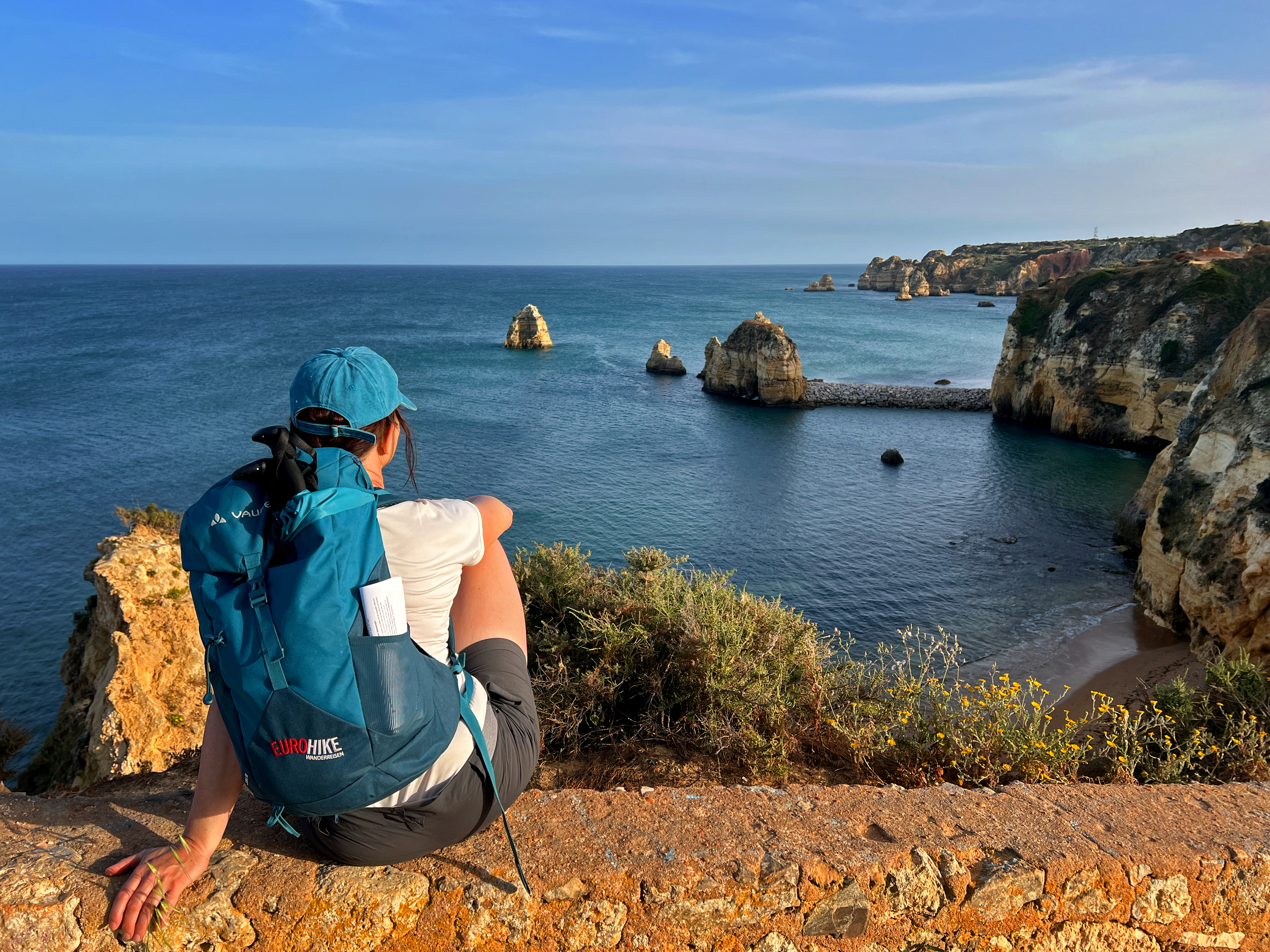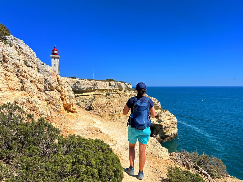 <Von Ferragudo auf einem beeindruckenden Klippenweg über steile Felsen, ausgehöhlte Kalksteinformationen und versteckte Sandstrände bis nach Carvoeiro, wo die Einkehr in einer Strandbar lockt. Anschließend setzen Sie Ihren Weg durch die sieben hängenden Täler fort, einem herrlichen Küstenpfad, der durch sieben Einschnitte vorbei an unzähligen Felsgebilden bis zur Praia da Marinha führt
