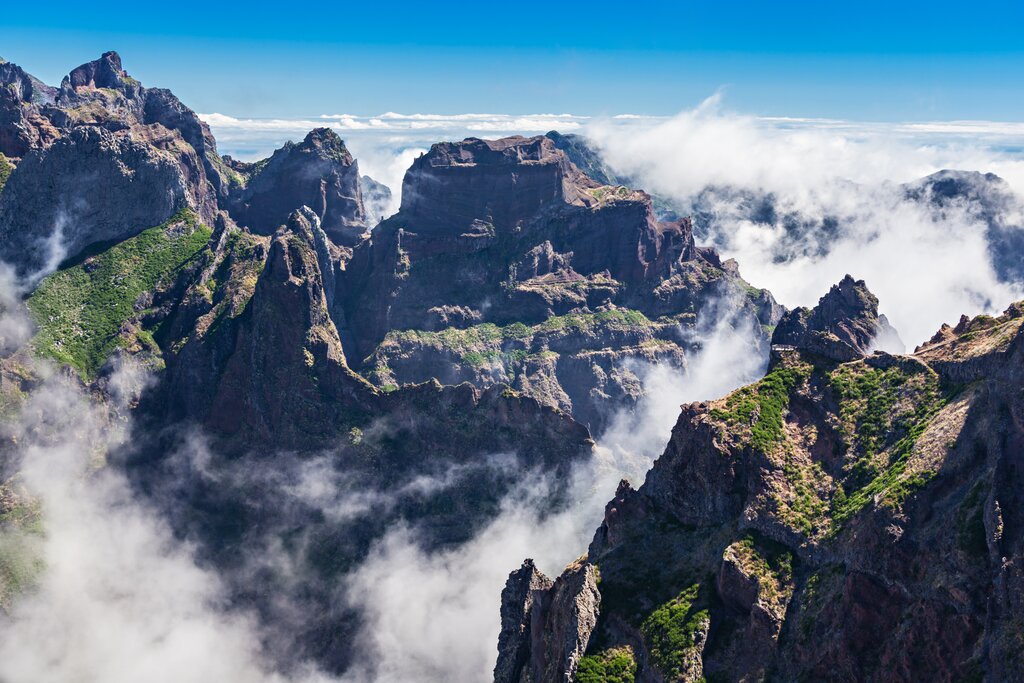 <Du wanderst über die karge Hochfläche Paul da Serra und steigst hinab zum Encumeada-Pass. Der vulkanische Tuffstein der Hochebene speichert Regenwasser und Feuchtigkeit aus dem Nebel und speist damit die zahlreichen Wasserfälle entlang deines Weges. Am Aussichtspunkt Bica da Cana genießt du einen Weitblick über Madeiras zentrales Bergmassiv mit seinen höchsten Gipfeln.