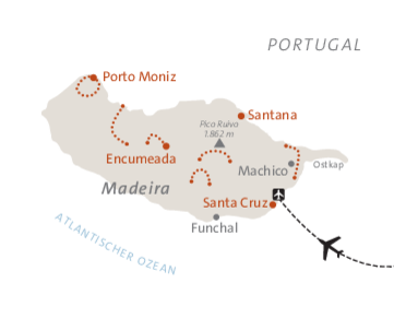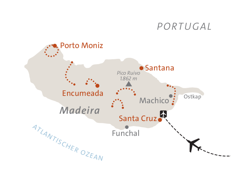 Madeira ist ein Wanderparadies mitten im Atlantik und begeistert mit dramatisch eingeschnittenen Tälern, weiten Hochebenen und spektakulären Berglandschaften. Die üppige Flora und Fauna der Insel sorgt dabei für ständige Abwechslung auf deinen Wegen. Du durchstreifst urwüchsige Lorbeerwälder, in denen über 500 Jahre alte Til-Bäume einen verwunschenen Märchenwald bilden. Als Krönung deiner Reise erklimmst du Madeiras Dach – den Pico Ruivo – und genießt vom höchsten Gipfel aus ein atemberaubendes Panorama bis zum glitzernden Atlantik. Nach den Gipfelerlebnissen erwartet dich zum Abschluss das Meer: In der Bucht von Machico lädt das kristallklare Wasser zu einem erfrischenden Bad ein. Darüber hinaus bist du maximal flexibel: Du kannst deine Reise an jedem beliebigen Tag beginnen, und sie ist bereits ab 1 Person buchbar. Vor Ort gestaltest du deinen Tagesablauf in eigenem Rhythmus – pausiere, wann dir danach ist, und wandere in deinem persönlichen Tempo. So genießt du die Freiheit, Madeira genau nach deinen Vorstellungen zu erleben.