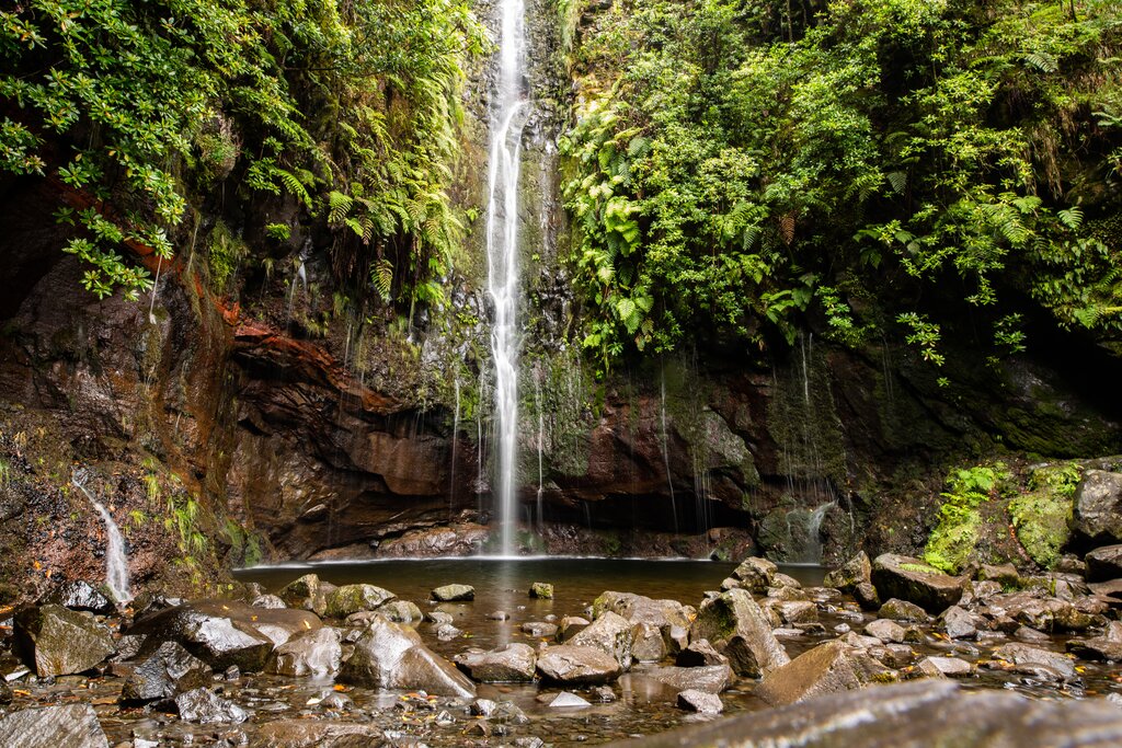 <Nach dem Frühstück bringt dich ein Transfer hinauf nach Queimadas. Von dort wanderst du auf der Levada do Caldeirão Verde tief ins immergrüne Herz der Insel. Du allein bestimmst, wie weit du gehen möchtest: Zuerst erreichst du den märchenhaften „Grünen Kessel“ (Caldeirão Verde), in den ein hoher Wasserfall herabstürzt. Wenn du noch Kraft hast, steigst du weiter auf zum geheimnisvollen „Höllenkessel“ (Caldeirão do Inferno) – hier, am Ursprung der Levada, tobt ein weiterer Wasserfall. Danach führt dich der Abstieg hinunter nach Ilha, ein kleines Dorf mit grandiosem Ausblick auf die Küste.