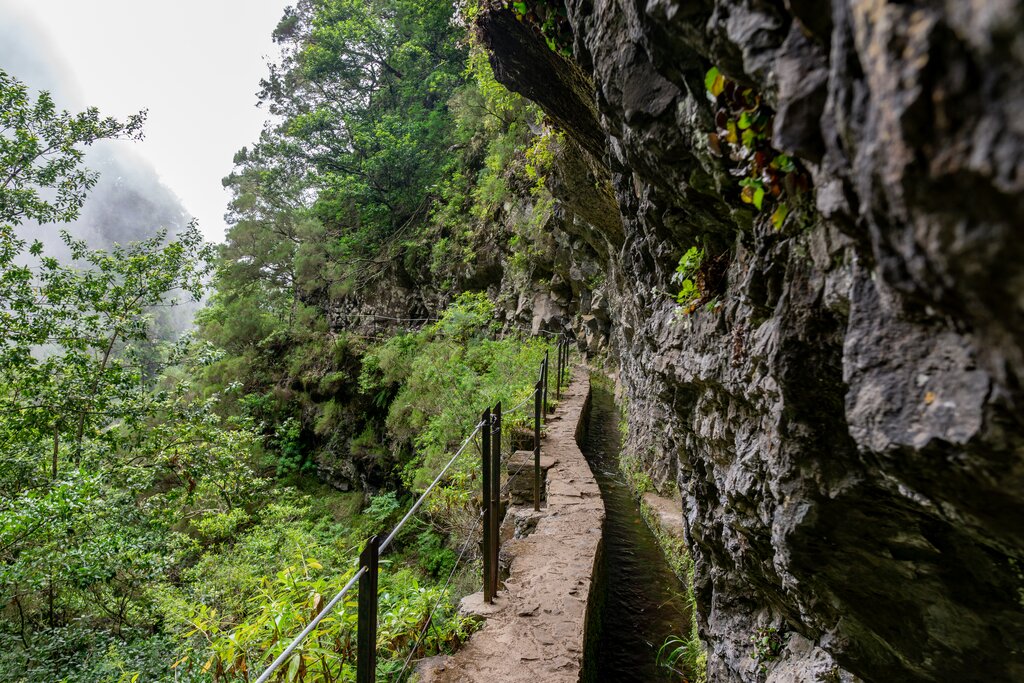 <Heute erkundest du die Nordseite Madeiras. Du wanderst dem Lauf des Wassers entgegen und dringst immer tiefer in den mystischen, immergrünen Lorbeerwald vor – ein uraltes Naturparadies und UNESCO-Welterbe. Die Levada führt hier das kalte Wasser aus Ribeiro Frio hinüber auf die südliche, sonnige Inselseite. Je weiter du dich von der Zivilisation entfernst, desto verwunschener wird deine Umgebung: Der Levadasaum ist von Moosen überzogen und von Farnen gesäumt, die Luft duftet frisch und feucht. Vergiss heute deine Stirn-/Taschenlampe nicht, denn du durchquerst einige Tunnels und passierst tropfende Wasserschächte im Fels.