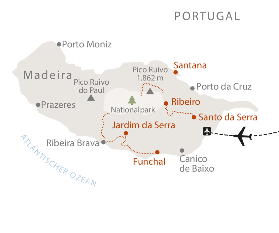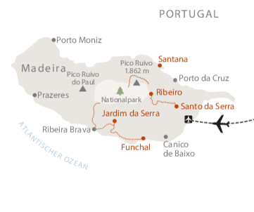 Stell dir eine smaragdgrüne Insel vor, durchzogen von über tausend Kilometern mystischer Wasserwege. Madeiras einzigartige Levadas winden sich durch Tunnel und über Bergkämme und machen die Insel seit Jahrhunderten fruchtbar. Auf dieser individuellen Trekkingreise folgst du ihnen von den Ursprüngen im bergigen Herzen Madeiras, wo moosbewachsene Lorbeerwälder die Luft mit Frische füllen, bis hin zu sonnigen Weinbergen an der Atlantikküste. Jeder Tag schenkt dir neue Ausblicke und grüne Wunder. Das Beste: Du wählst täglich spontan aus bis zu drei Routen die Tour, die zu deiner Lust und Kondition passt. Und bei Buchung entscheidest du dich zwischen gemütlichen Standard-Unterkünften oder der komfortableren Superior-Variante. Egal ob alleine, zu zweit oder in einer kleinen Gruppe - diese Reise kannst du bereits ab einer Person antreten und voller Freiheit und ganz nach deinem Rhythmus genießen.