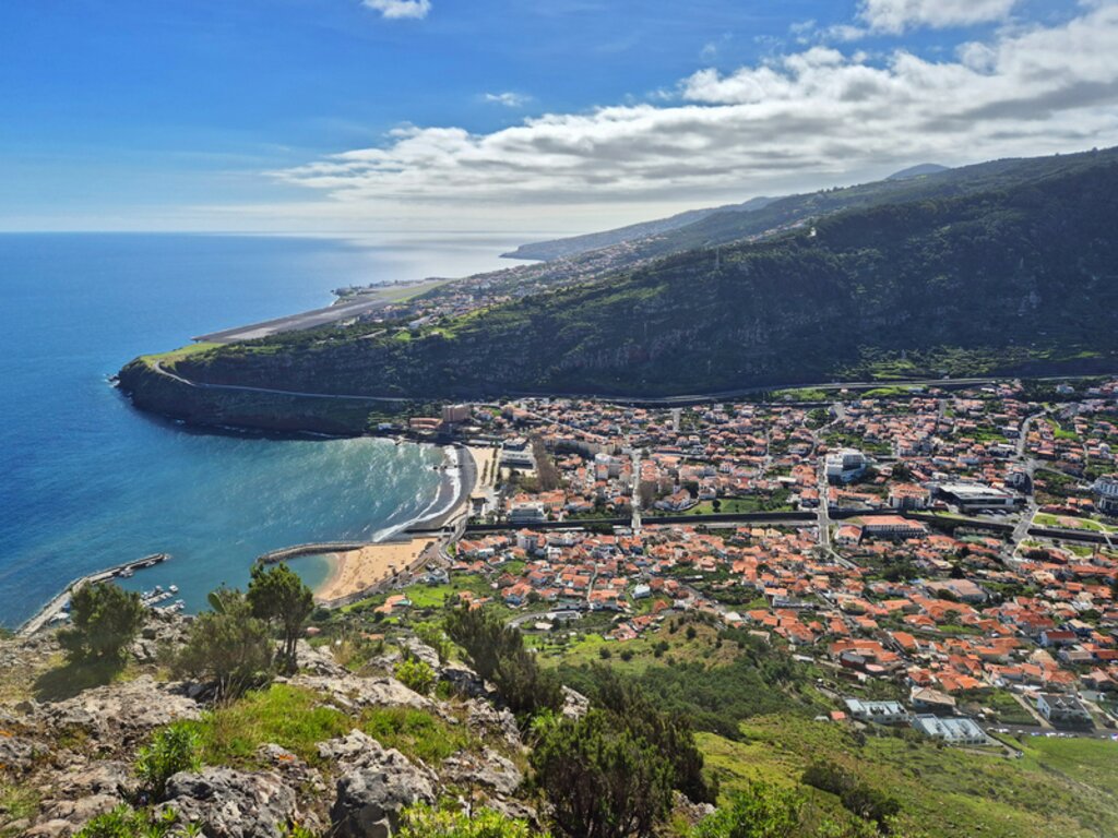 <Angekommen in Machico begrüßt Sie die milde Atlantikluft Madeiras. Der goldene Sandstrand lädt zu einem ersten Spaziergang ein. Ein entspannter Auftakt für Ihre Wanderwoche.