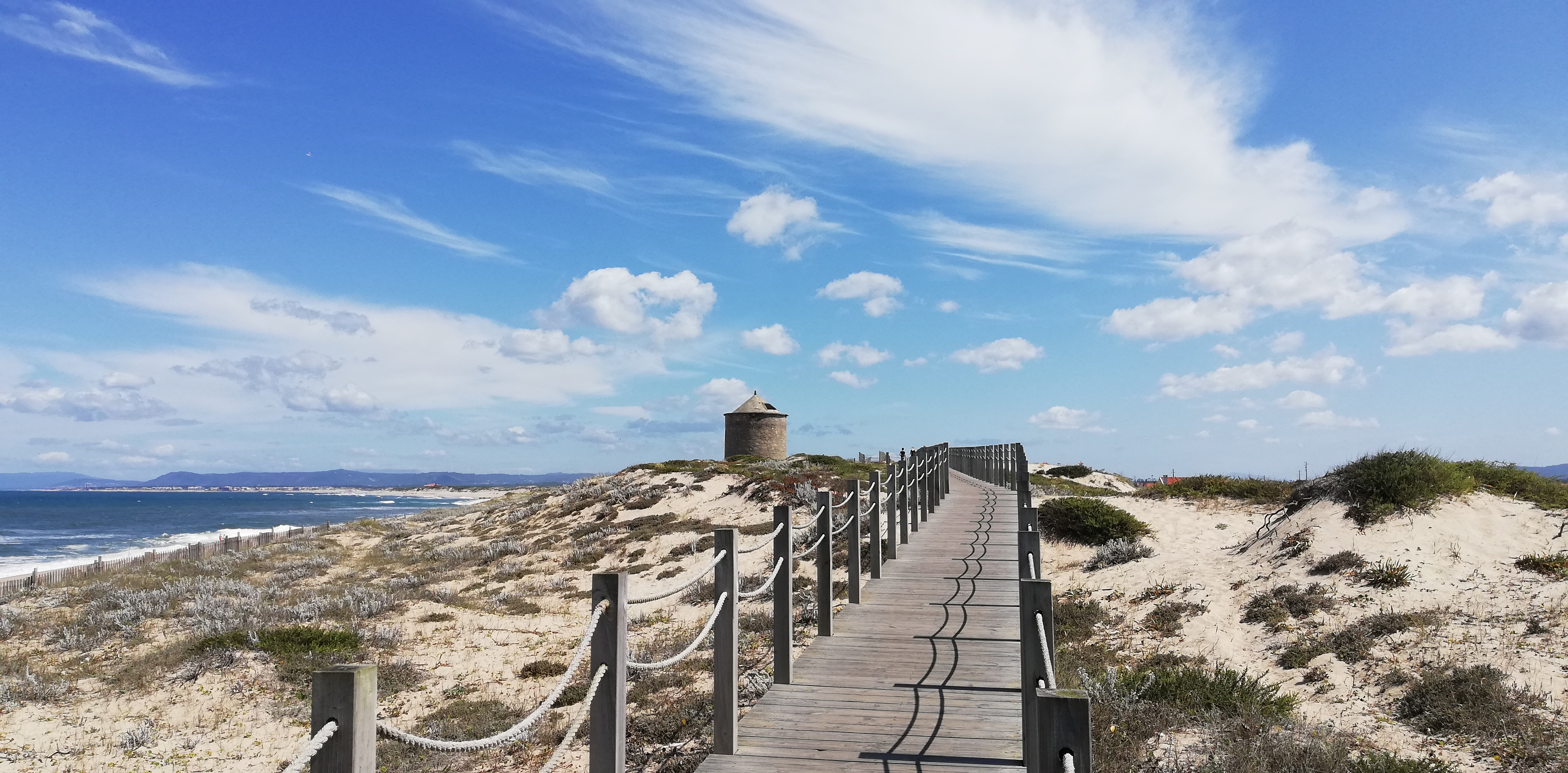 <Umgehen Sie die Vororte von Porto und beginnen Sie Ihren Camino am Sandstrand von Labruge. Genießen Sie abwechslungsreiche Strandlandschaften, während Sie sich entlang der Küste in nördlicher Richtung auf den Weg zur historischen Stadt Vila do Conde am Mündungsgebiet des Flusses Ave machen.