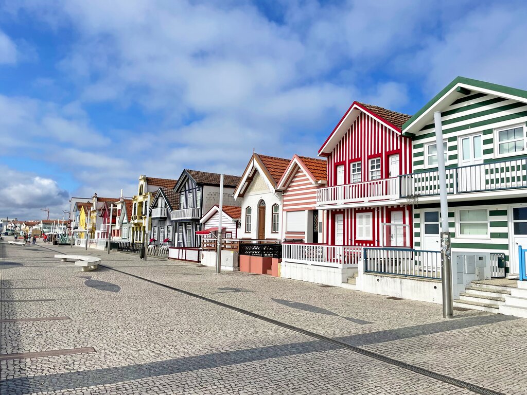 <Der Radweg entlang des Rio Aveiro bringt Sie direkt nach Costa Nova. Die bunt-gestreiften Strandhäuser sind hier ein begehrtes Fotomotiv. Gemütlich radeln Sie weiter Richtung Süden und erreichen schon bald Ihr heutiges Etappenziel. Spazieren Sie entlang des kilometerlangen Sandstrands und genießen Sie die Atmosphäre des beschaulichen Badeorts.