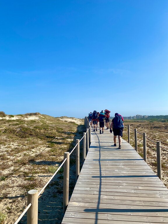 <Ein kurzer Transfer bringt dich nach dem Frühstück nach Esposende. Der Ort empfängt dich mit endlosen Sandstränden, vom Atlantik umspült, und einer sanften Dünenlandschaft, die in das Blau des Himmels übergeht. Die Etappe führt dich rund 23 Kilometer entlang der Atlantikküste durch eine abwechslungsreiche Landschaft aus Stränden, Dünen, kleinen Wäldern und Flussauen. Immer wieder passierst du traditionelle Dörfer und Fischerorte, bevor du über die markante Eiffel-Brücke den Fluss Lima überquerst und die charmante Stadt Viana do Castelo erreichst, die mit ihrer historischen Altstadt und der Lage zwischen Meer und Bergen einen besonderen Abschluss dieser Tagesetappe bietet.