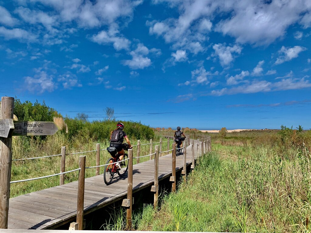 <Es ist an der Zeit, die herrliche Meeresbrise des Atlantiks zu spüren. Der erste Tag beginnt in der Altstadt von Porto mit der Überquerung der Don-Luís-Brücke, die einen spektakulären Blick auf den Fluss Douro bietet. Sie wird Ihnen großartige Momente bieten, die Sie in Erinnerung behalten werden. Auf dem Weg dorthin haben Sie die Möglichkeit, mehrere kleine Strände wie Valadares, Francelos und Miramar zu genießen, während Sie auf einem küstennahen Weg radeln. Auch wenn das Wasser für manche zu kalt sein mag, sind diese Strände ein großartiger Ort, um ein Bad zu nehmen und die Sonne zu genießen (wenn die Wetterbedingungen es zulassen!). Am Miramar-Strand lohnt sich ein Abstecher zu einer kleinen, faszinierenden Kapelle, die auf der Spitze eines Felsens am Ufer steht: die berühmte Capela do Senhor da Pedra. In Espinho, einem Badeort, fahren Sie auf einem schönen Radweg entlang des Pinienwaldes zum Strand von Furadouro. Entspannen Sie sich in Ihrer Unterkunft oder machen Sie einen Spaziergang entlang der Promenade und genießen Sie die ruhige Küstenatmosphäre nach einer unvergesslichen Fahrt.