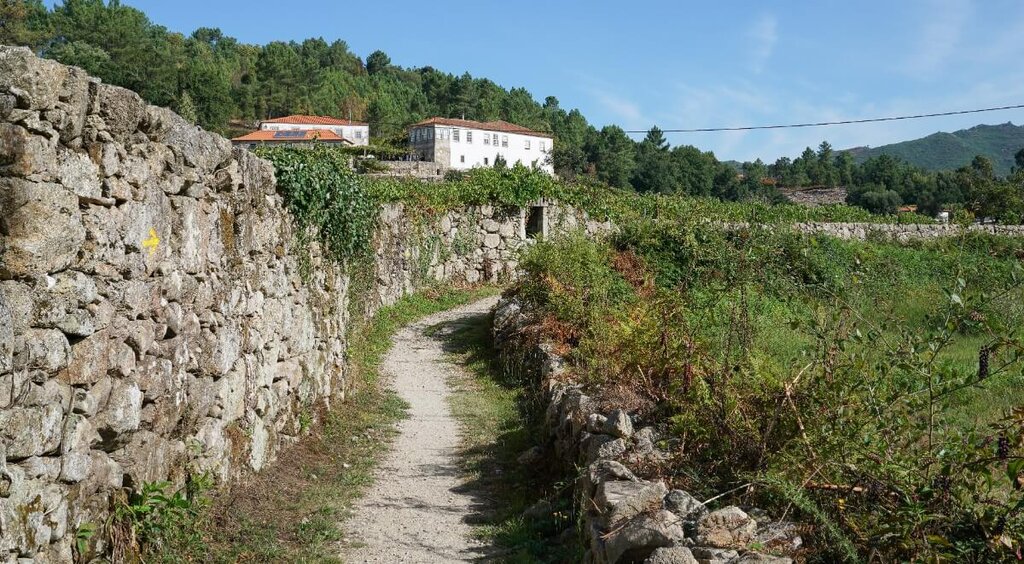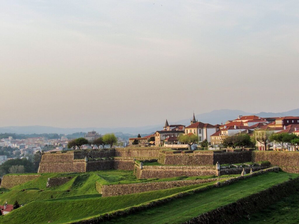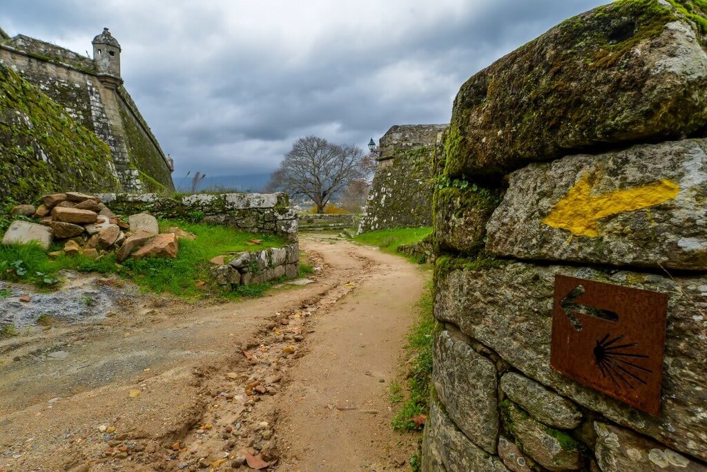 <Beim Verlassen von Ponte de Lima eröffnet sich dir eine magische Landschaft aus Bergen, Wäldern und Tälern, in dem Blumen farbige Akzente setzen und die Stille Einzug hält. Am Ufer des Rio Miño an der spanischen Grenze ragt das portugiesische Festungsdörfchen Valença empor. Beim Anblick der Festungsanlagen mit ihren zwei Gräben bleibt so manchem Pilger der Mund offen stehen. Lass dich von den atemberaubenden Ausblicken auf den Rio Miño und auf das spanische Städtchen Tui mit seiner Kathedrale begeistern. -