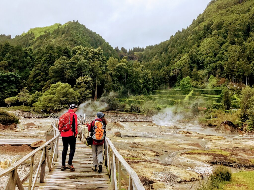 Ein Spaziergang um den berühmten Furnas-See auf den Azoren: Ihr erstes Abenteuer auf den Azoren beginnt am Furnas-See, einem beliebten Ort auf São Miguel, der für seine sprudelnden „Caldeiras“ (mineralreiche geothermische Quellen) und deren Verwendung für die Zubereitung eines traditionellen Eintopfs in einem durch vulkanische Aktivität erhitzten Loch im Boden bekannt ist. Dieser Rundweg führt Sie um den See herum durch die wunderschöne Flora und Fauna der Insel. Die hohen Bäume im Kontrast zu den blühenden Blumen sind die perfekte Umgebung, um die Ruhe und Beschaulichkeit dieses Ortes zu genießen. Am Ende des Tages empfehlen wir Ihnen ein Bad in den warmen und therapeutischen Gewässern. Dieser Ort ist weltweit für seine vulkanischen Gewässer und Gärten bekannt.
