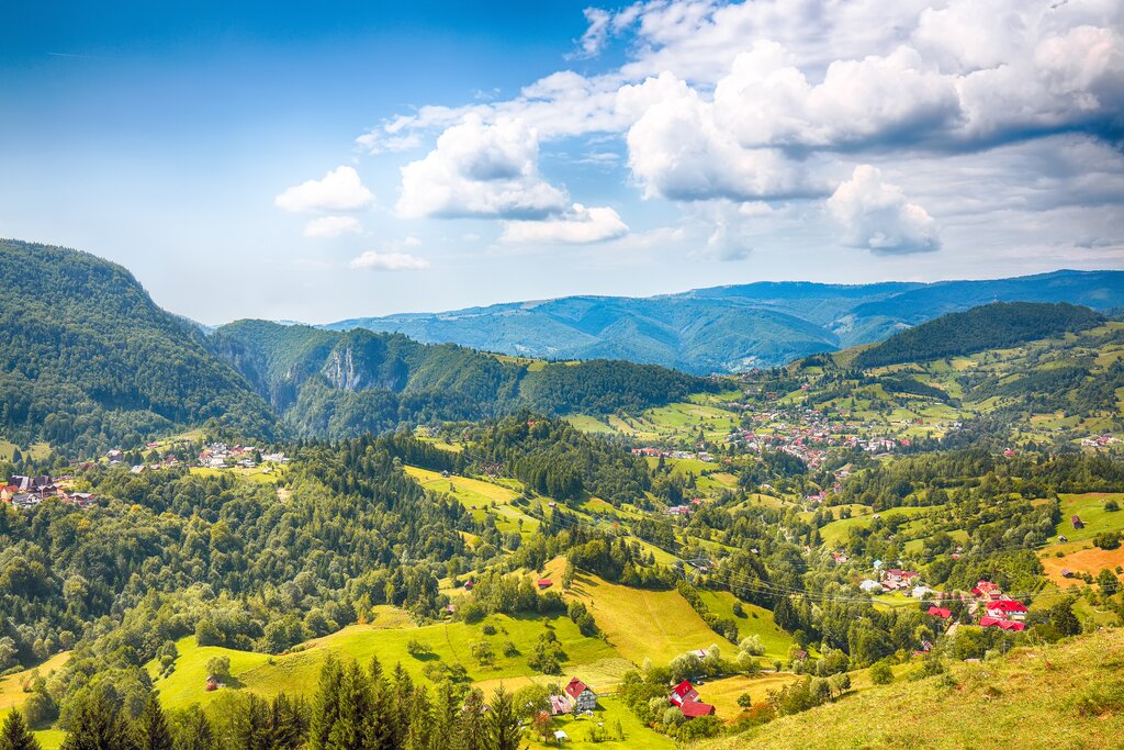 Unsere Wandereise Karpaten führt Sie nach Transsylvanien, das legendäre Land des Grafen Dracula, ist eines der unbekannten und weitgehend unberührten Bergparadiese Europas. Die Wälder und Berge der Karpaten beherbergen Europas höchste Population an Wölfen (3000), Braunbären (5000) und Luchsen (2000). Ihre bogenartige Wanderung erstreckt sich vom Schulergebirge (Postavarul), dem Hausberg der Kronstädter, in den beliebten Bucegi und dann in den mächtigen Königstein (Piatra Craiului). Sie führt hoch zu den Kalibaschendörfern Magura und Pestera, deren Bewohner noch teilweise von der Transhunanz leben, der Wanderschäferei. Durch die Prapestiorschlucht, in der eine Szene des Films ’Cold Mountain’ gedreht wurde, geht es hinunter nach Zanesti, das international durch ein Wolfsprojekt berühmt wurde. Neben einer spektakulären Berglandschaft sehen Sie die Törzburg (Schloss Drakula) und die Burg Rosenau sowie Kronstadt/Brasov, die alte Handelsmetropole der Siebenbürger Sachsen.