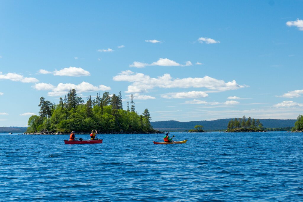 Vom Kanu aus erleben Sie eine typisch lappländische Region, die über Jahrtausende von den Ureinwohnern als Jagd- und Weidegebiet genutzt wurde. Dunkle Nadel- und Birkenwälder, mit reicher Tierwelt, sanfte Bergrücken, die sich mit schroffen Klippen abwechseln, prägen das Bild. Elche, Rentiere sind sehr gut zu beobachten, auch Stein- und Fischadler zeigen sich gern am Himmel. -