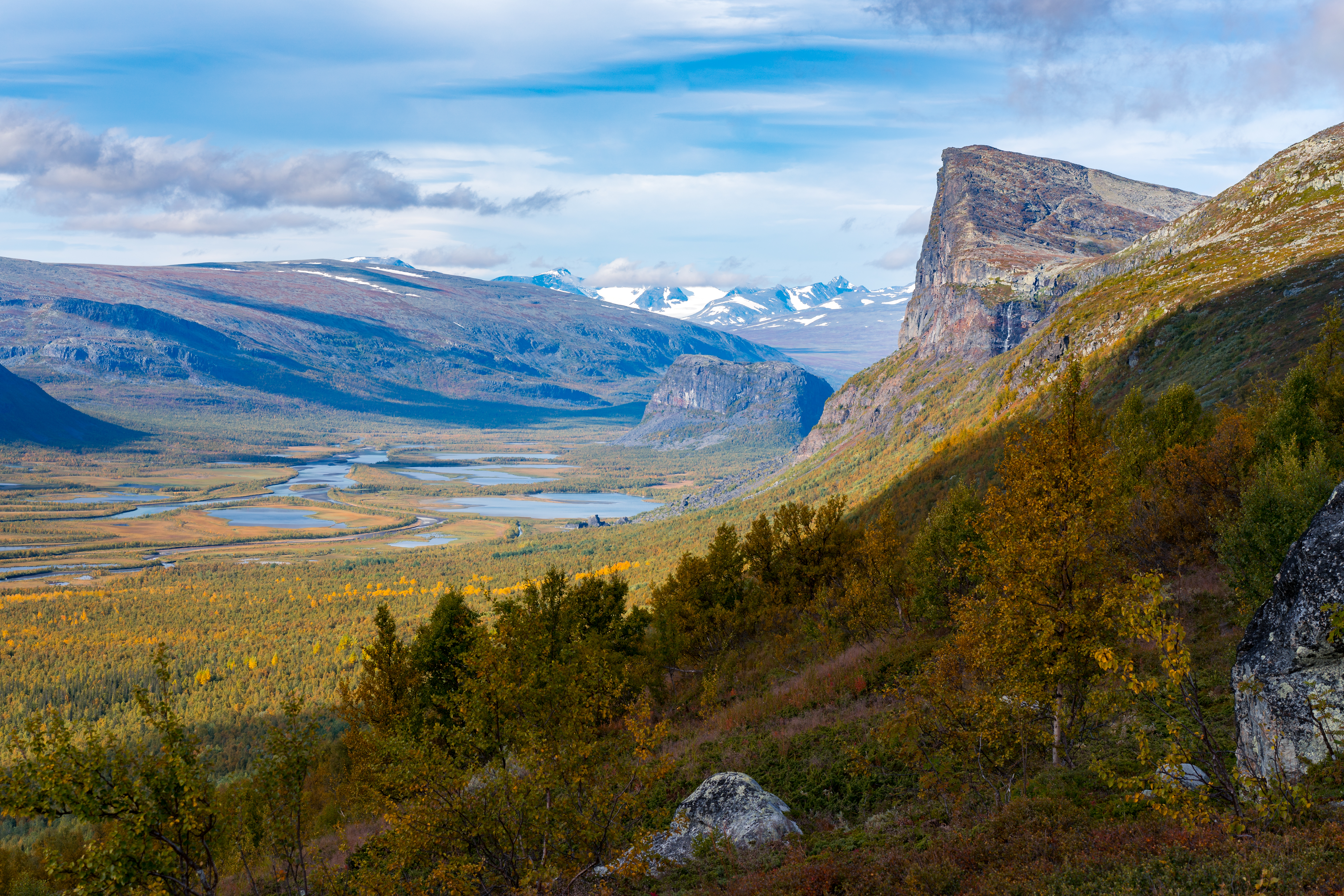 <Der Abschnitt zwischen Saltoluokta und Kvikkjokk ist einer der schönsten des Kungsleden. Er verläuft teilweise im Gebiet des bekannten Sarek-Nationalparks, der allgemein als Europas letzte Wildnis bezeichnet wird. Ihr taucht ein in eine einmalige Welt aus hohen Gipfeln, eisigen Gletschern, riesigen Seen und rauschenden Flüssen sowie einer unglaublichen Stille, die man nur fernab der Zivilisation erleben kann. Ihr werdet die spektakuläre Aussicht vom Skierfe ins Delta des Rapaädno erleben, die Berge des Sarek-Nationalparks sehen können und die wilde Schönheit des gesamten Gebirges genießen. Alle wilden Tiere Skandinaviens leben hier: Elche, Rentiere, Braunbären, Vielfraße, Stein- und Fischadler. Besonders im Rapadalen leben viele Elche und auch die (menschenscheuen) Braunbären kommen ab und zu hierher. Auch große Rentierherden könnt Ihr in den Hochtälern beobachten.